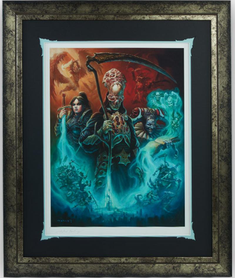 THE UNDERWORLD UNITED PREMIUM ART PRINT IS A HIGH-END REPRODUCTION OF AN ORIGINAL ACRYLIC AND OIL PAINTING BY WORLD-RENOWNED ARTIST ALEX HORLEY. THIS INTRICATE AND STRIKING PIECE CAPTURES THE DARK AND TWISTED CONFLICTS FACED BY DEATH AND HIS COURT OF THE DEAD: ALL OF EXISTENCE IS MIRE IN A BATTLE BETWEEN THE EQUALLY VILE REALMS OF HEAVEN AND HELL. DEATH AND THE UNDERWORLD ARE ENSLAVED TO HARVEST THE MORTAL SOULS THAT FUEL THEIR WAR, BUT THEY YEARN FOR A MORE NOBLE PURPOSE; TO END THE WAR BETWEEN HEAVEN AND HELL, AND RESTORE BALANCE TO THE UNIVERSE.