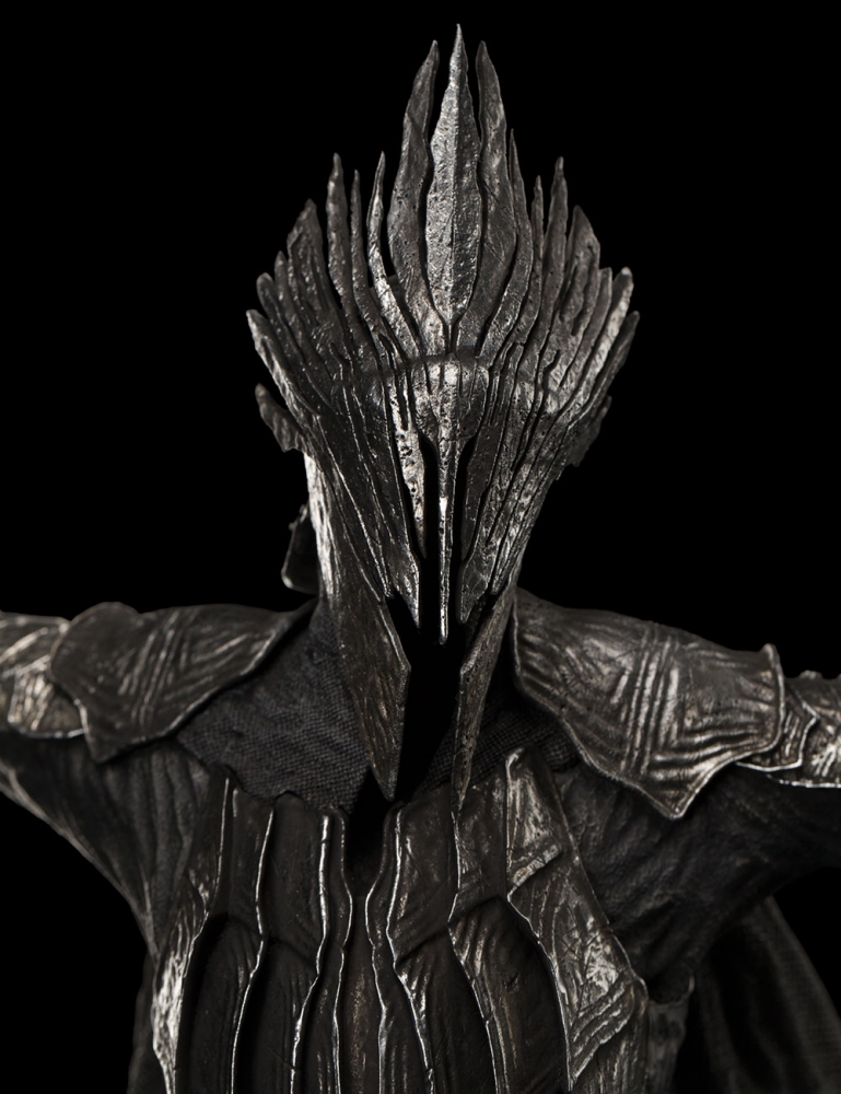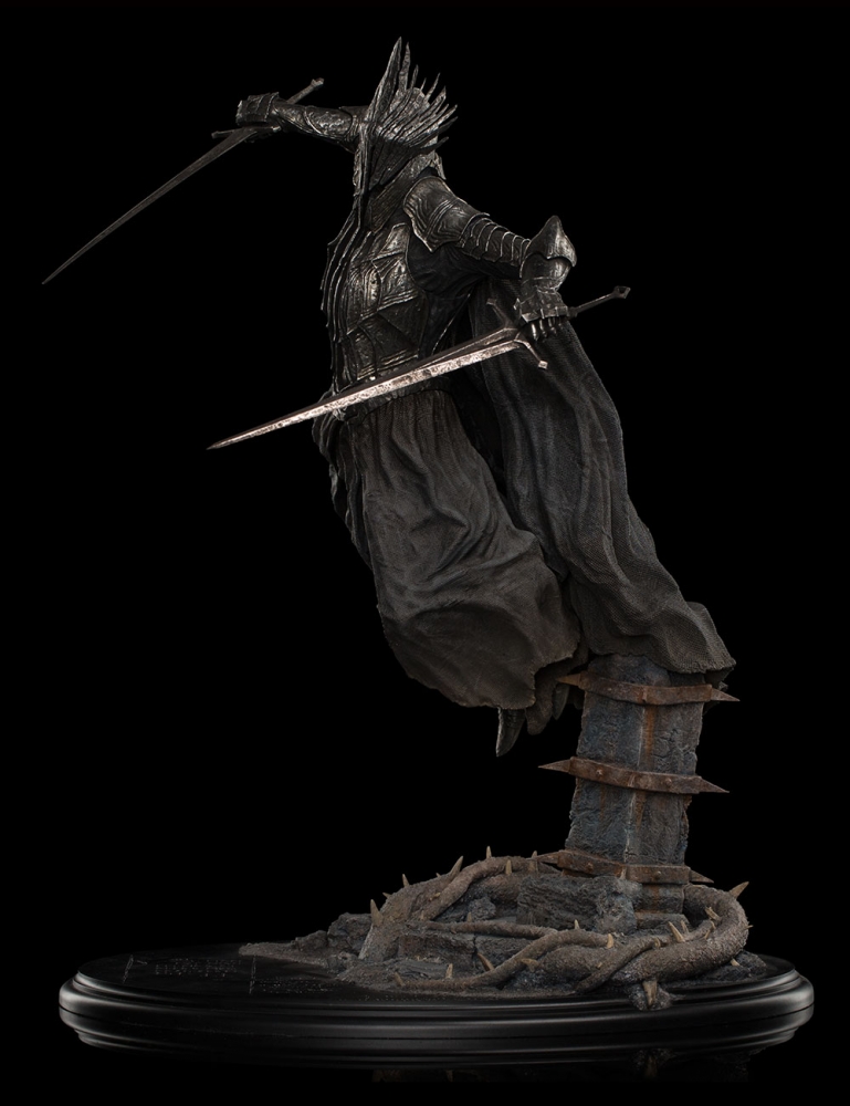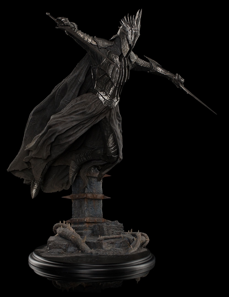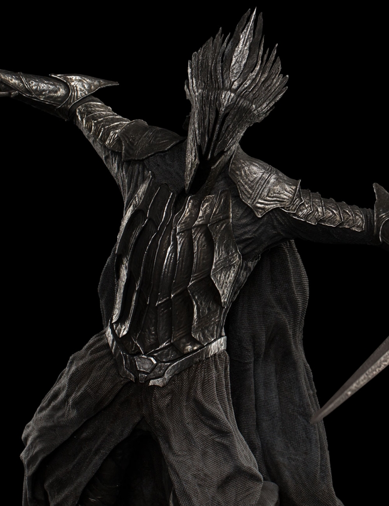 Dol Guldur; the ruined fortress, yet not so deserted as it might first seem… Within the crumbling walls and strangling thorns a battle of mighty forces is about to be waged. Descending jagged stairs to surround Lady Galadriel and Gandalf the Grey, the Nazgûl appear clad for war in ghostly armour. Invisible to mortals, their spectral forms are revealed to eyes that see beyond the corporeal and into the spirit world; colourless, sinister figures, glowing with malevolent intent.