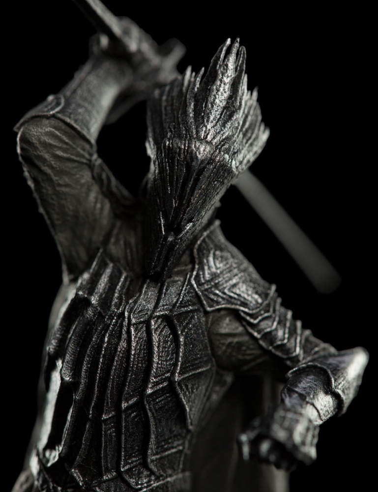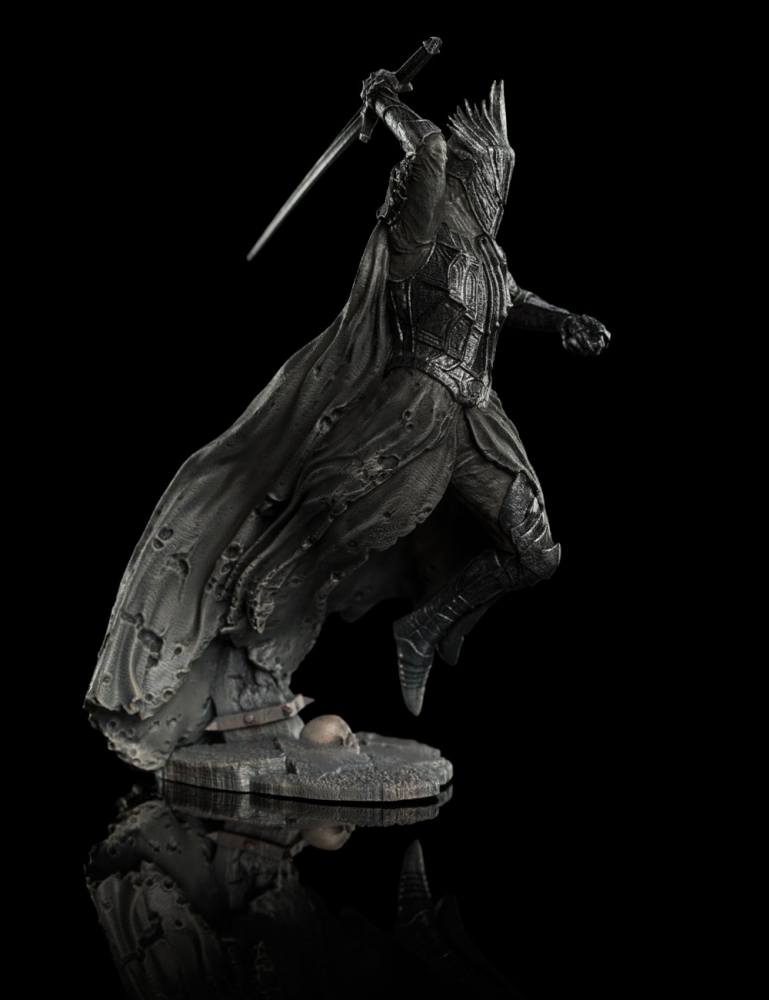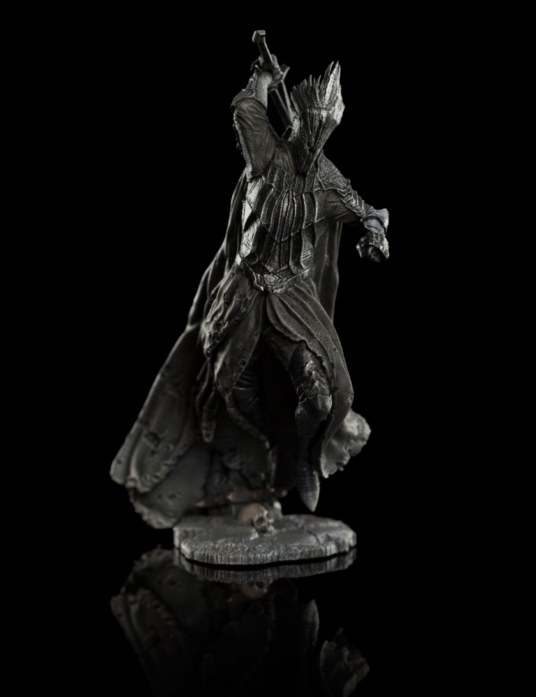 Once mortal, the Nazgūl had been lords among Men; rulers, sorcerers and kings. Ensnared by the Rings of Power they wore, their earthly bodies had fallen away, leaving spectral Wraith-forms, bound for all eternity to the will of their master, Sauron, the Necromancer of Dol Guldur. Greatest of the Nazgūl, Sauron’s terrible Ringwraith servants, the Witch-king was once lord of the realm of Angmar. Now he haunts the ruins of Dol Guldur, leading his fellow Wraiths against the united Elves and Istari. Display the Witch-king in your Dol Guldur diorama, surrounded by the servants of Sauron. Weta Workshop has developed its 1:30 Scale range with accessibility for the collector in mind. Rather than one large bespoke piece, each scene fits together as a series of modular elements that can be built up over time. Collectors can then place miniature characters within the scene in limitless configurations.