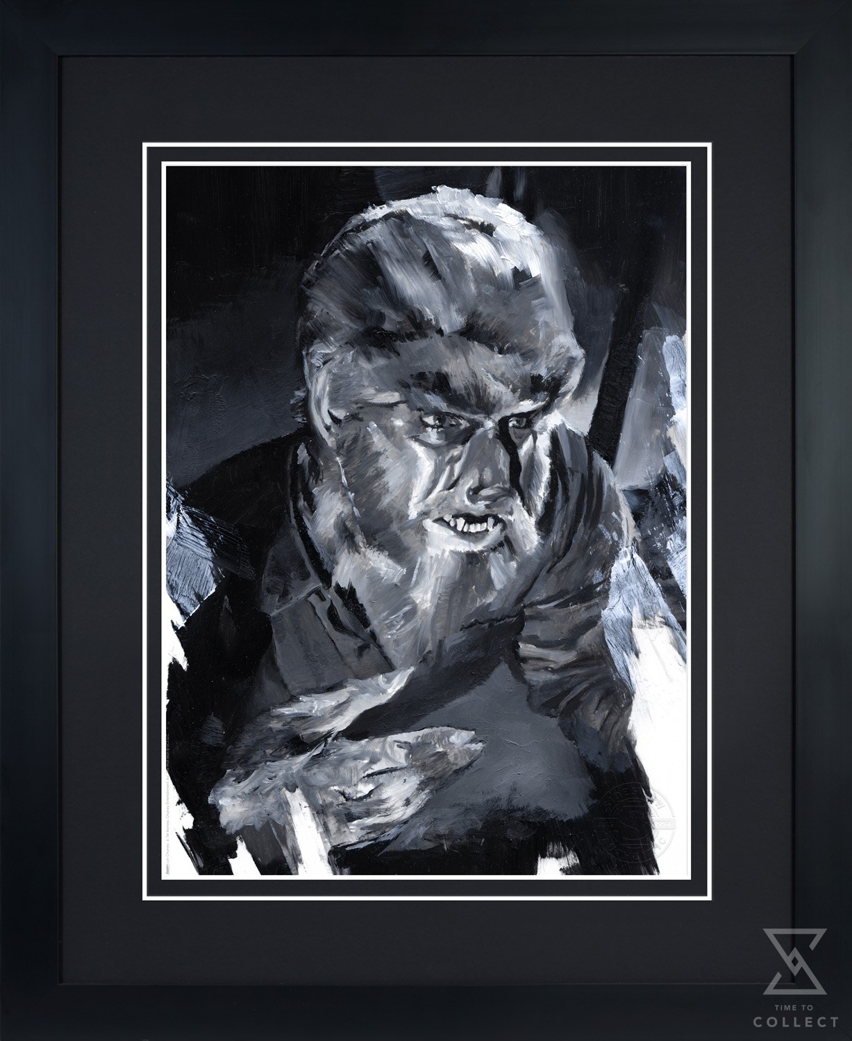 Each The Wolf Man Fine Art Print features an embossed Sideshow Seal of Authenticity and is faithfully reproduced from the artist’s original oil painting that was displayed and sold during the Sideshow x CODA Universal Monsters gallery exhibition. Available unframed or in a custom framed presentation, this horror movie artwork makes a stunning addition to any fan’s art collection.