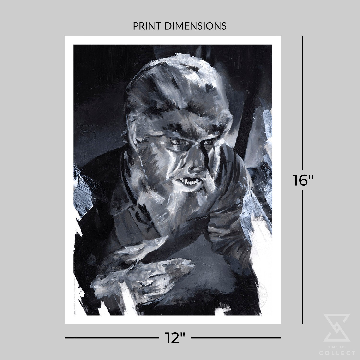 Each The Wolf Man Fine Art Print features an embossed Sideshow Seal of Authenticity and is faithfully reproduced from the artist’s original oil painting that was displayed and sold during the Sideshow x CODA Universal Monsters gallery exhibition. Available unframed or in a custom framed presentation, this horror movie artwork makes a stunning addition to any fan’s art collection.