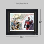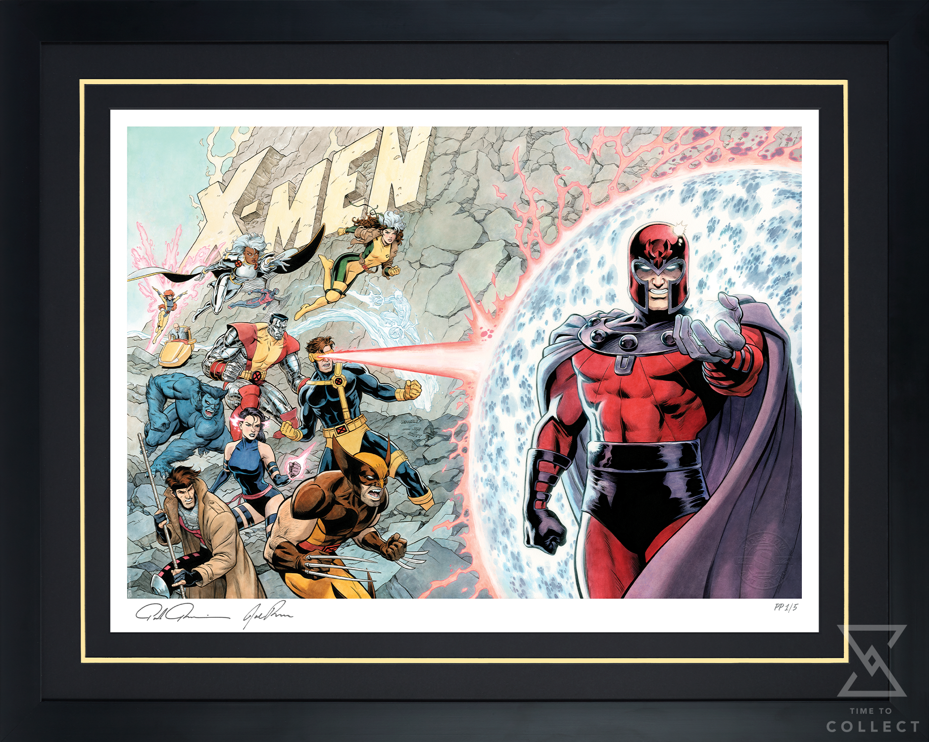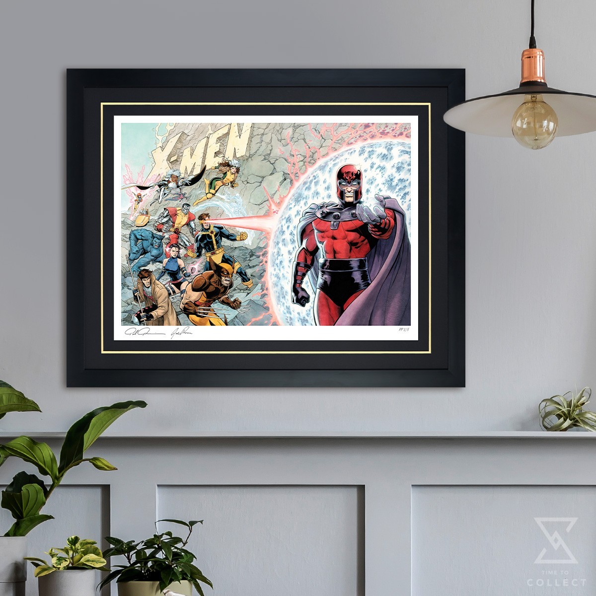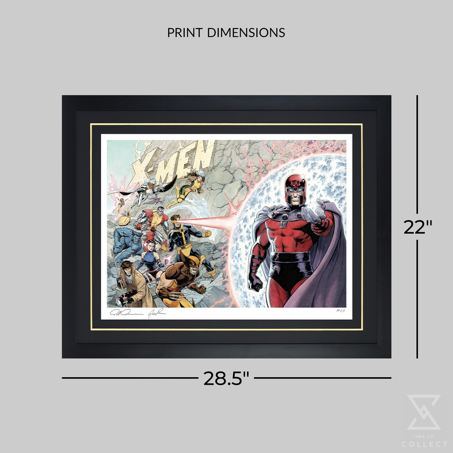 This X-Men artwork was originally designed as a variant cover for X-Men #27 (2023), written by Gerry Duggan for Marvel Comics, as a 60th anniversary homage to the original gatefold connecting covers for X-Men #1 (1991) drawn by Jim Lee and Scott Williams. It is now available in one complete image with the addition of the villain Magneto, added specially for the Sideshow release. Each The X-Men #1 Tribute Fine Art Print features authorized, automated artist signatures and an embossed Sideshow Seal of Authenticity as part of the limited edition of 300 pieces. Presented as an unframed giclée print or in a custom framed presentation, this super hero art is the ultimate collector’s item for Marvel fans.