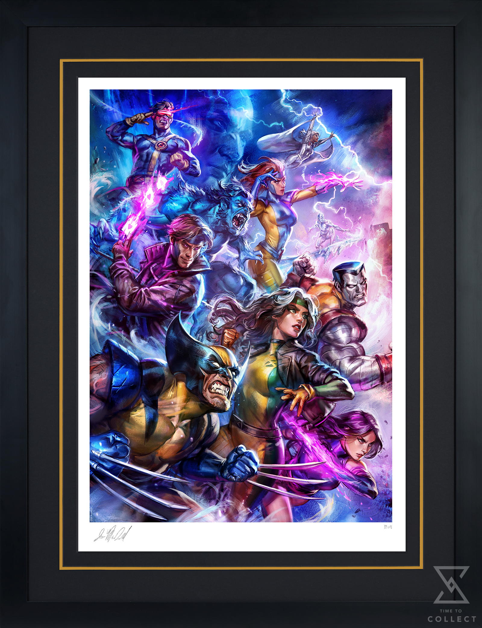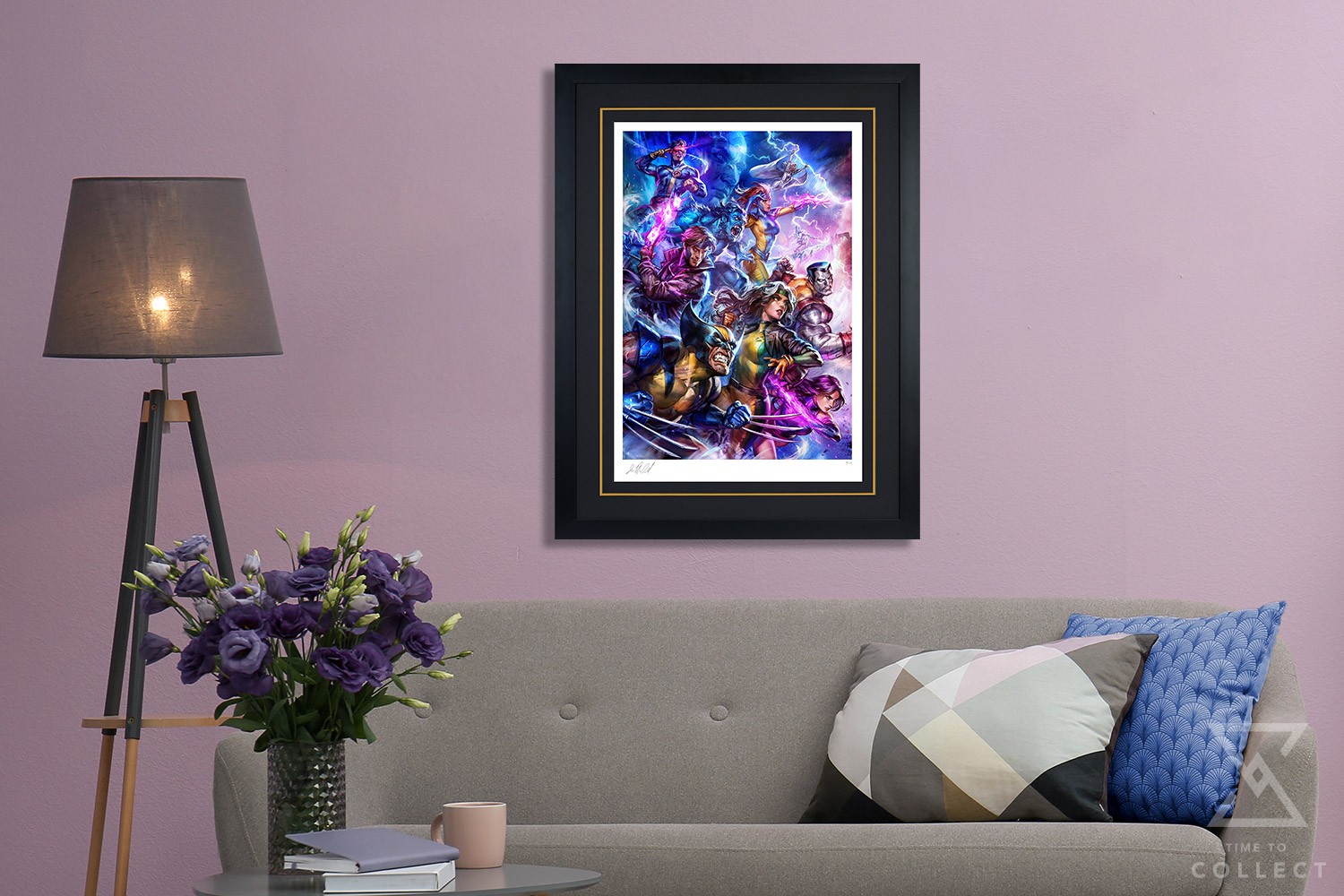 Inspired by decades of X-Men comics, this super hero art is available as an unframed giclée print or in a custom framed presentation. Each X-Men Fine Art Print features an authorized, automated artist signature and an embossed Seal of Authenticity as part of the limited edition of 350. For an even more epic wall display, pair the X-Men Fine Art Print with The Brotherhood of Mutants Fine Art Print by Ian MacDonald — sold separately.