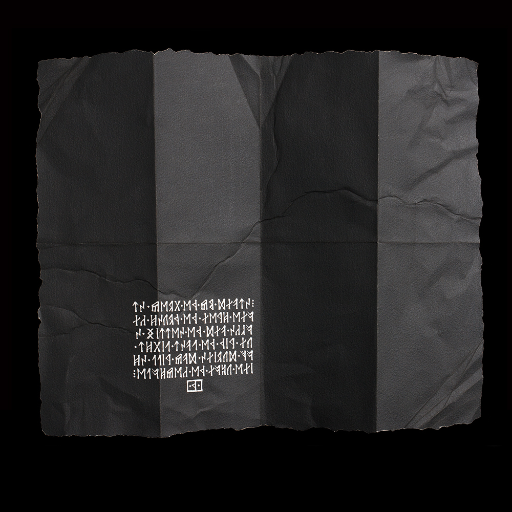 The reverse of the map is coloured black, except for the outlines of the famous Moon Runes that play a part in the story. This allows you to see the runes when the map is held up against the light or framed with back lighting. Each individual map is the work of one man and totally unique.