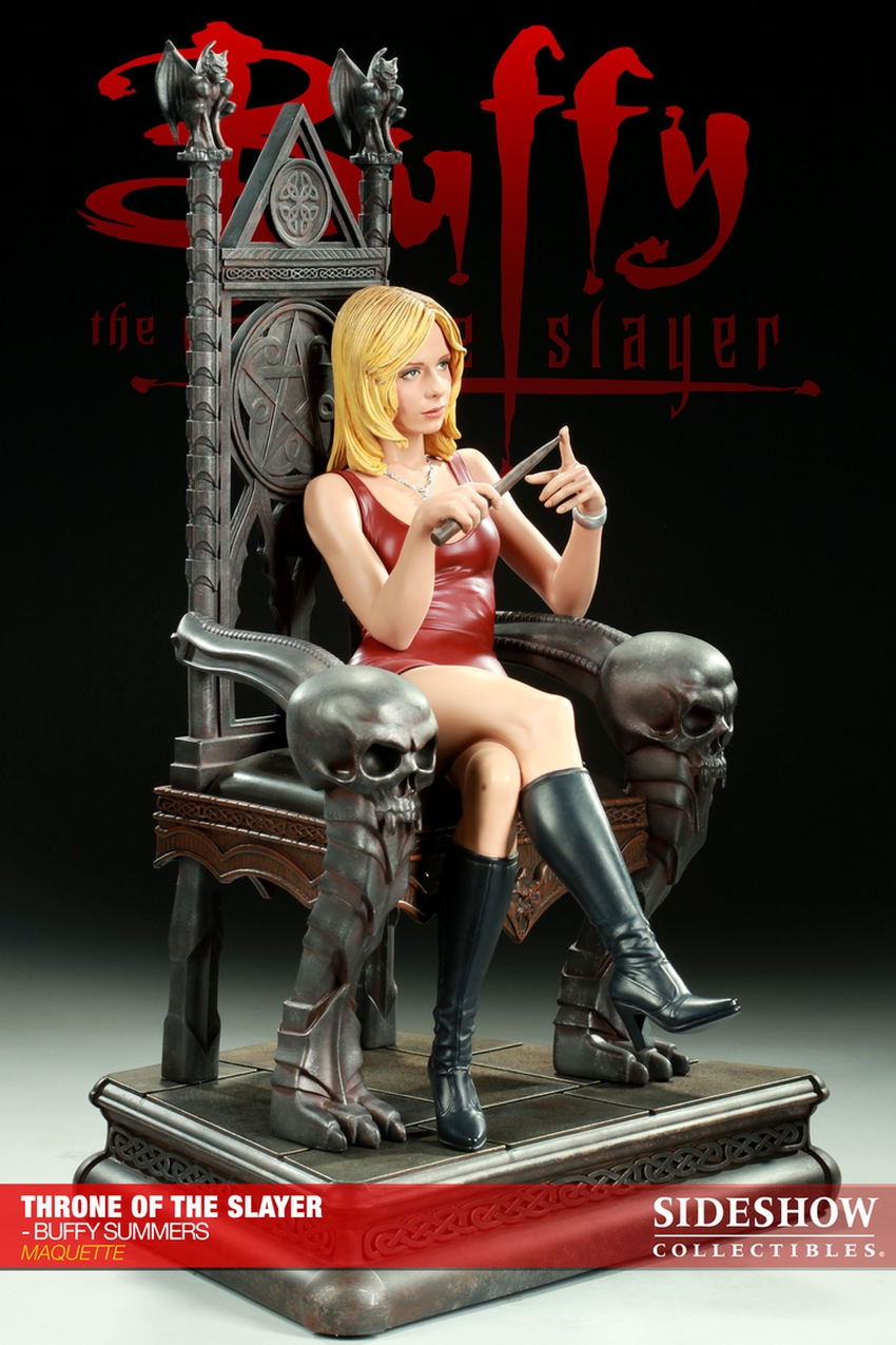 Celebrating Joss Whedon’s long-running television series Buffy the Vampire Slayer is the Throne of the Slayer – Buffy Summers Maquette. This detailed sculpture presents an elaborately seated chosen one, awaiting her next battle with the weight of her duty as the Slayer heavy on her shoulders. Each piece is individually painted and finished to exacting standards, each with its own unique quality and detail that is the trademark of a handcrafted Sideshow Collectibles product. The Throne of the Slayer – Buffy Summers Maquette is an outstanding addition to any collection, a must-have for all Whedon fans.