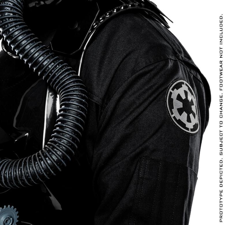 • Black 100% polyester jumpsuit (Coyote’s note: Hello sauna !!) with front pockets and zipper. Screen-printed with the imperial logo.