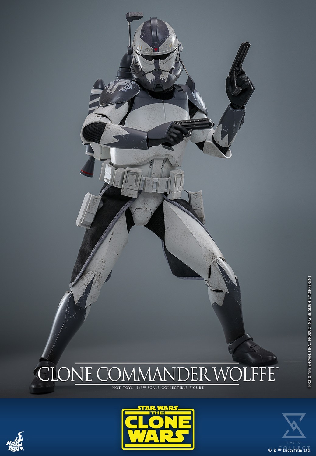 The highly-accurate Clone Commander Wolffe collectible figure features characters’ unique armor and helmet with weathering effects and distinctive markings, a head sculpt with realistic likeness, interchangeable helmets and gauntlet accessories to recreate Phase I and Phase II armor appearance, a blaster rifle, a pair of blaster pistols, a jetpack, a data pad and a display base!
