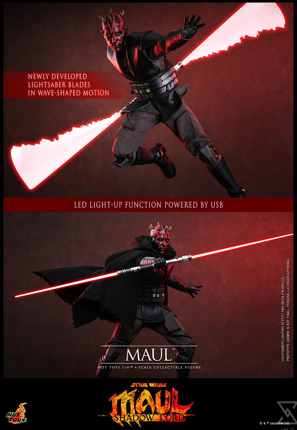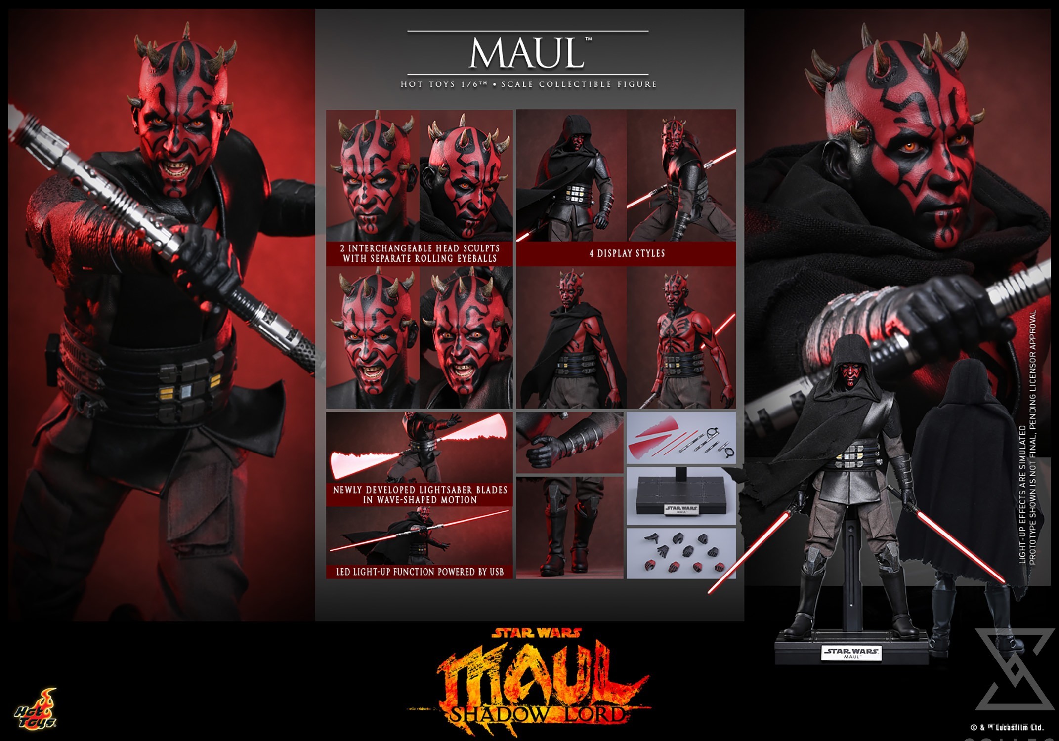 Cast aside by his former master and surviving through sheer hatred, Maul’s path of vengeance continues. Forging his destiny and building power within the galaxy’s criminal underworld, the rogue dark side wielder has cemented himself as one of its most formidable warriors. Inspired by the thrilling animated series Star Wars: Maul – Shadow Lord™, Sideshow and Hot Toys is pleased to introduce the Maul™ Sixth Scale Collectible Figure.