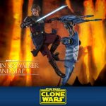 The highly-detailed collectible figure is specially crafted based on the debut appearance of Anakin Skywalker in Star Wars: The Clone Wars animation series, featuring a skillfully crafted head sculpt, meticulously tailored costume and a set of beautifully designed armor guards for alternative styles. His signature LED light-up lightsaber, a number of interchangeable hands, a thermal detonator, a hologram projector and several hologram figures representing Ahsoka Tano™, Yoda™, and Obi Wan Kenobi™ round out the set so you can take on the droid armies.