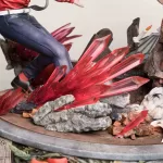 Tokyo Ghoul: Touka VS Tsukiyama Elite Fandom Statue is a 1/6-scale masterpiece that envisions the battle between Touka and Tsukiyama in the sacred solitude of the church. Setting a record as the first Figurama Collectors statue to feature a female character, its aesthetics include a shattered stained-glass window that illuminates the graceful combatants in holy LED lighting. Touka’s beautiful kagune is an unprecedented achievement of Figurama Collectors’ craftsmanship. Award-winning 3D sculptor Keita Okada brings Touka’s billowing ukaku wing to life, capturing its complex colors and shifting forms in massive 1/4-scale. Rearing back for a kick, Touka soars over a base of immersive details and Easter Eggs—candles dripping with wax, the eyepatch Kaneki lost during his scuffle with Tsukiyama, Touka’s rabbit mask, Tsukiyama’s crescent moon mask, and crystal shards from Touka’s kagune piercing through the church’s wreckage. A crimson rose garnishes a base wrapped in the infamous letter that leads to this fateful encounter.