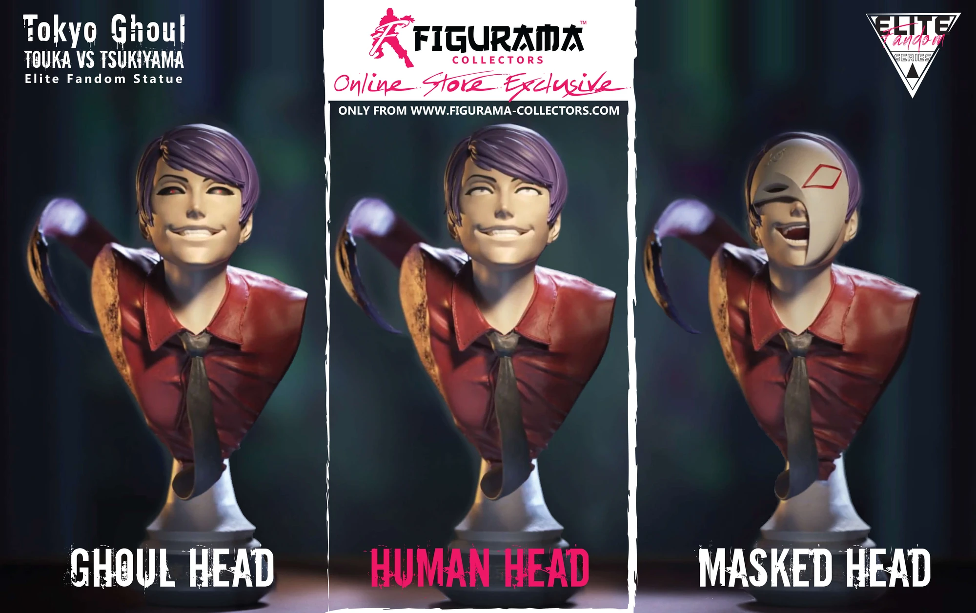 Designed as the perfect companion piece to Kaneki VS Yamori, Touka VS Tsukiyama includes two alternative portraits, two miniature bust stands, and a matching official art print illustrated by a Japanese artist commissioned by the licensors. Certificates of authenticity are signed by Figurama Collectors CEO Shanab and concept artist Daniel Kamarudin.