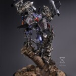 The design of the base is inspired by the pyramid seen in the final battle during the second Transformers movie. The collapsed stone pillars and pyramid walls of the base highlight the chaos create through Optimus Prime and Megatron’s feud, but also creates an overall sense of space and gives a further realistic aesthetic to the statue. Megatron has a total of 4 LEDs installed, two red eyes, a light blue LED underneath a pair of vents on the back, and a single light blue LED in his hand muzzle; Optimus Prime has one set of light blue LEDs in his eyes.