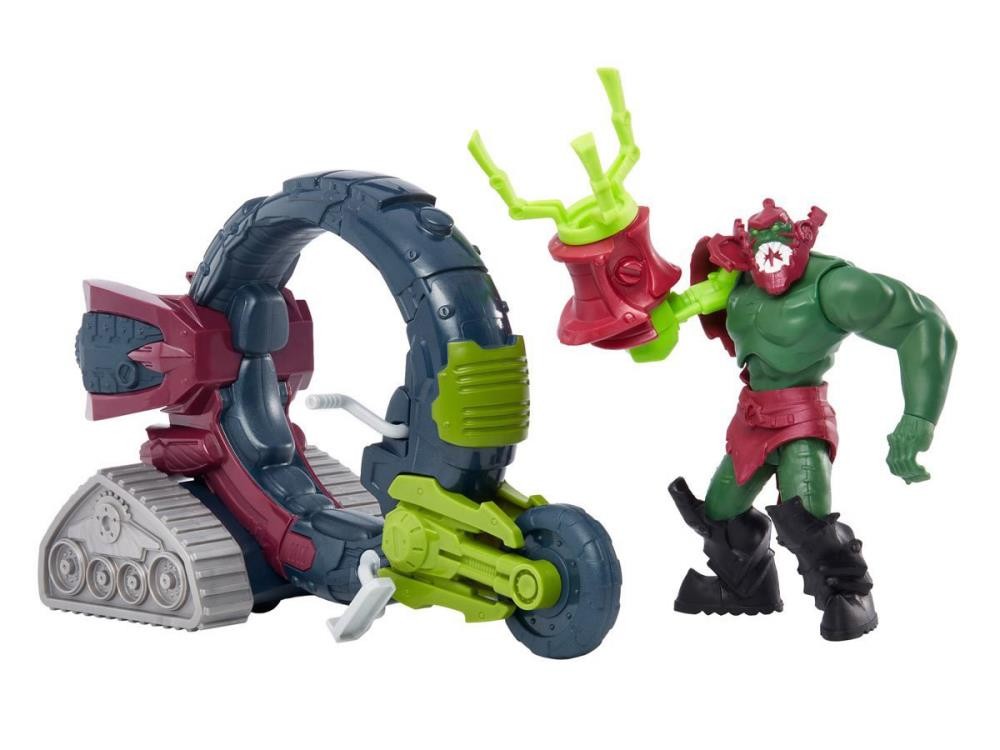 From the new He-Man and the Masters of the Universe animated series comes a new figure and vehicle of the villain Trap Jaw! He stands about 5.50 inches tall and comes with his cycle that features functional spinning wheels.