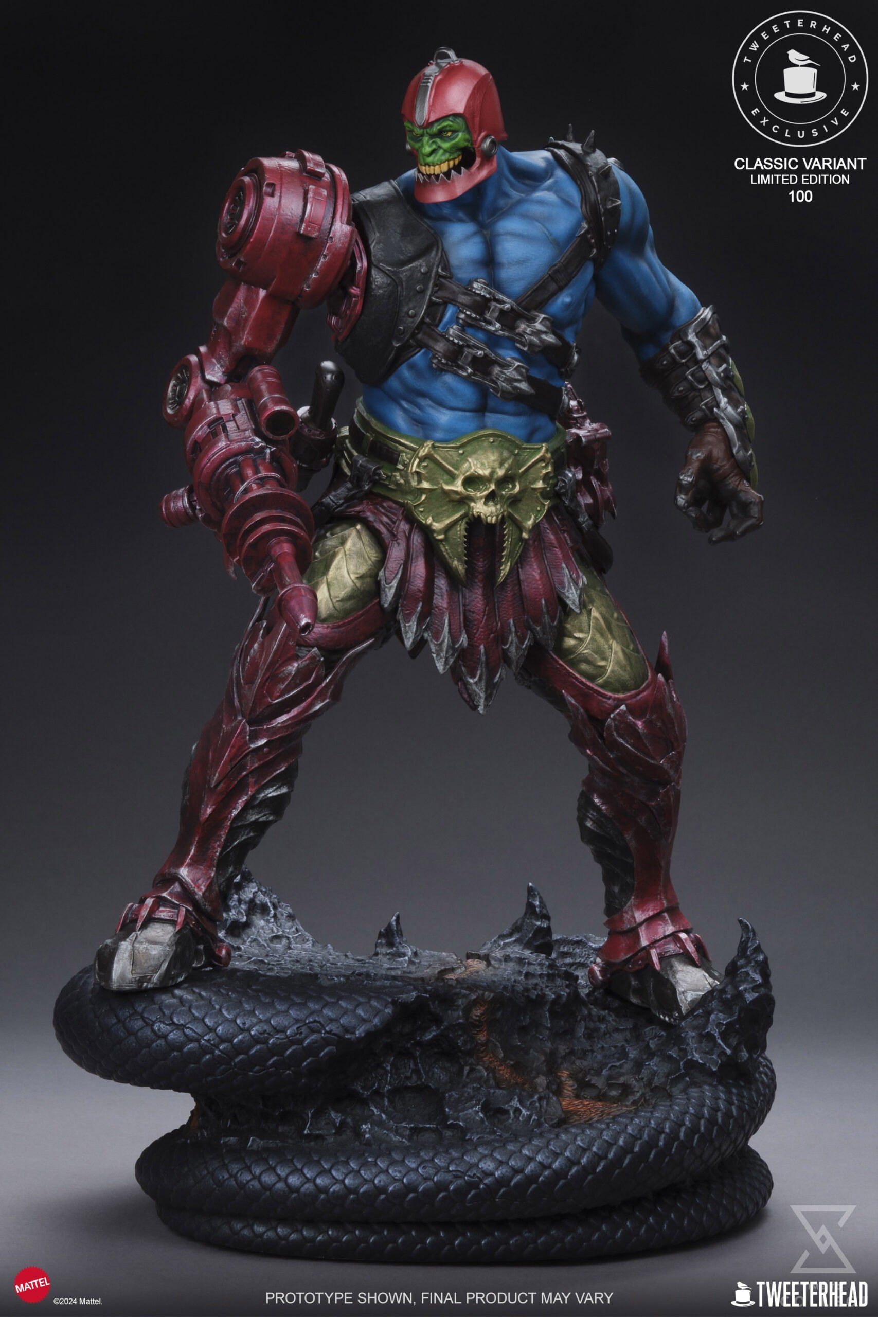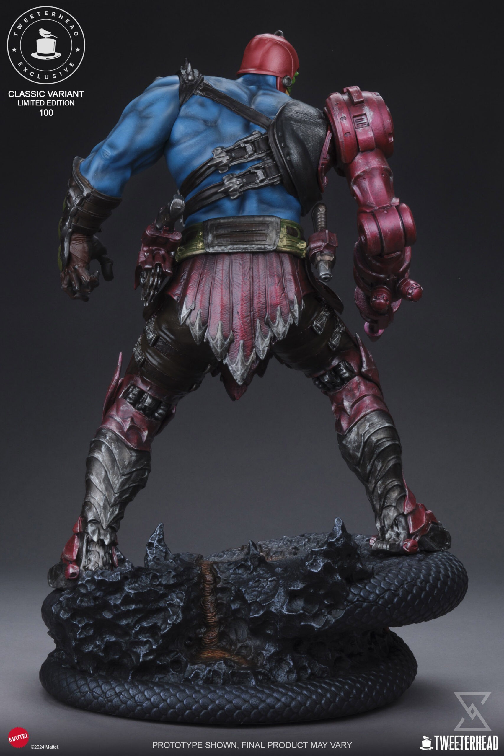 With Trap Jaw standing atop his Snake Mountain themed base, this evil and armed cyborg will match perfectly with other Evil-Warriors from the “Legends” line, like our Mer-Man, Skeletor and Beast Man Maquettes!