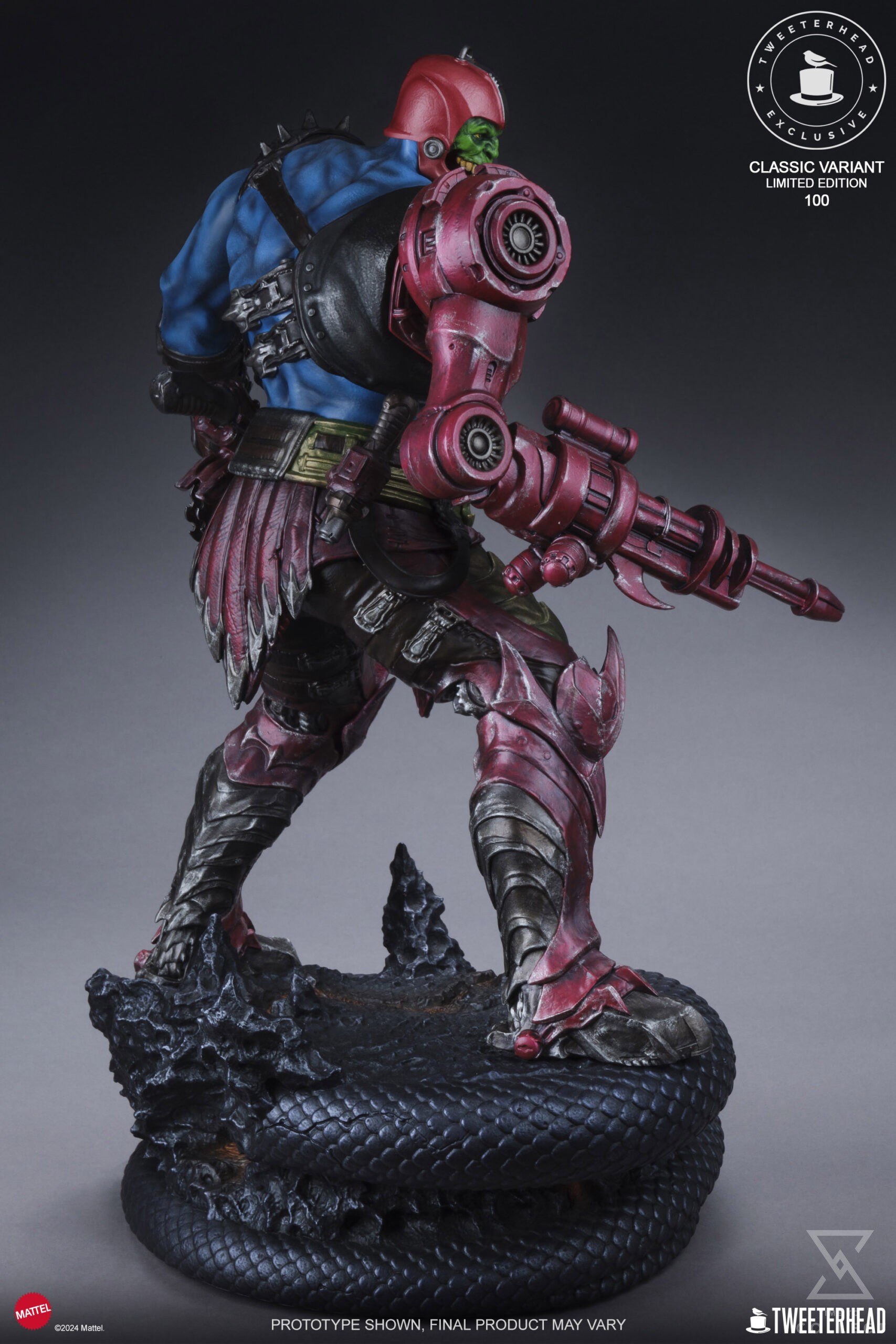 Tweeterhead Presents the new Trap Jaw VARIANT “Legends” Maquette! Inspired by the classic cartoon look of Trap Jaw, this new variant really pops, especially with the BRAND NEW “Blaster Arm” included alongside the classic arm!