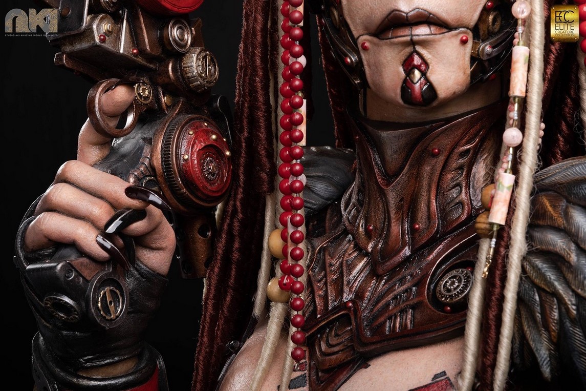“Tre Kana is a new female character born at Monsterpalooza 2019, a dream festival dedicated to horror, monsters, creatures, and special makeup held annually in California, USA. The design is an eccentric fusion of cyber and steampunk. In the near future, a world in which extraterrestrials coexist is unfolding. She is a highly skilled female sniper of the Special Task Force, which cracks down on the evil of extraterrestrials.” – Akihito