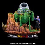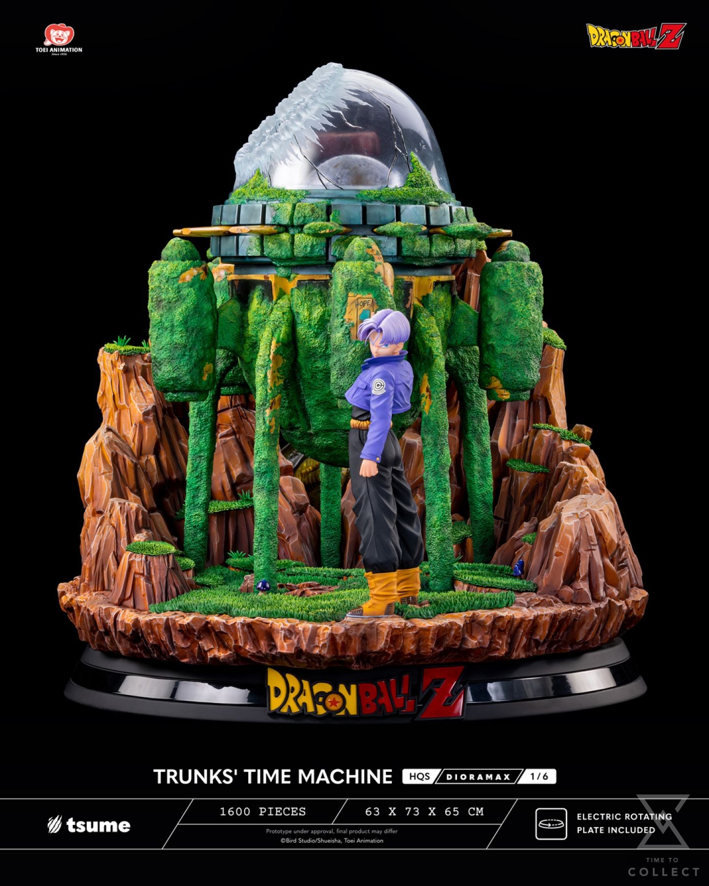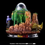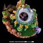 This HQS Dioramax statue features Future Trunks as he discovers the abandoned time machine on Earth, accompanied by Gohan and Bulma. Returning to the past in order to save Son Goku and avoid a tragic fate for the planet, he compares this strange discovery with his own and unique machine: these are exactly the same! Wearing his Capsule Corporation jacket, Trunks uses his sleeve to clean up the moss that has invaded the abandoned machine, originally yellow and blue. He realizes that under this vegetation, we can read the word “Hope !!”, which he had engraved on his machine before traveling in the past … The doubt is raised! We see in the gaze and attitude of Trunks that he becomes aware of the disaster that the presence of this machine can portend … Almost completely covered in moss, the status of the machine suggests that it has been here for a long time, or at least enough time for nature to reclaim its rights over its environment. Trunks then noticed the gaping hole in the cockpit in transparent resin, suggesting it had been melted from inside the machine. While trying to decipher this riddle, we find here the two halves of an eggshell, while the on-board computer indicates that the mysterious passenger would have arrived in the timeline of Son Goku and his friends 3 years before Trunks … Could it be that a life form from the future is lurking on Earth without anyone knowing? In order to be able to observe the entire scene, an electric rotating plate has been integrated into the base of the statue (power supply provided). As Son Gohan sees it in the distance, we can make out the shell of a huge insect that would have molted and left the remains of its old life behind … The hunt for cyborgs is on, Cell’s evolution has begun …