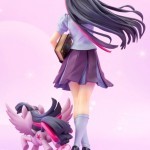 Characters from the American cultural phenomenon MY LITTLE PONY are joining the BISHOUJO series! The next character to join the lineup is the serious and studious protagonist of the series. Twilight Sparkle has been beautifully rendered into the BISHOUJO style by BISHOUJO series illustrator Shunya Yamashita. Based on her human appearance in Equestria Girls, the BISHOUJO rendition of Twilight Sparkle wears a stylish school girl inspired outfit. The BISHOUJO’s iconic long straight hair is recreated flowing lightly around her. Twilight Sparkle’s kindness and delicacy are expertly translated into statue form, down to the tips of the fingers perched lightly on the frame of her glasses. The statue also includes a pony version of Twilight Sparkle, who is floating lightly at the BISHOUJO’s feet. You won’t be able to take your eyes off this adorable pony! The pony statue was sculpted with the utmost attention to detail, and her long eyelashes are a site to behold!
