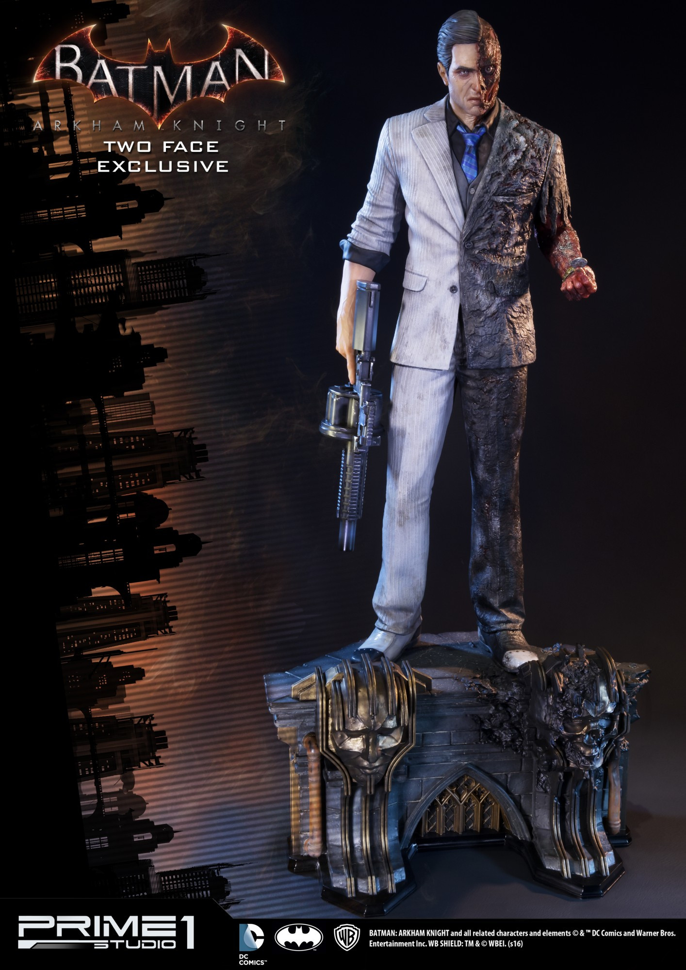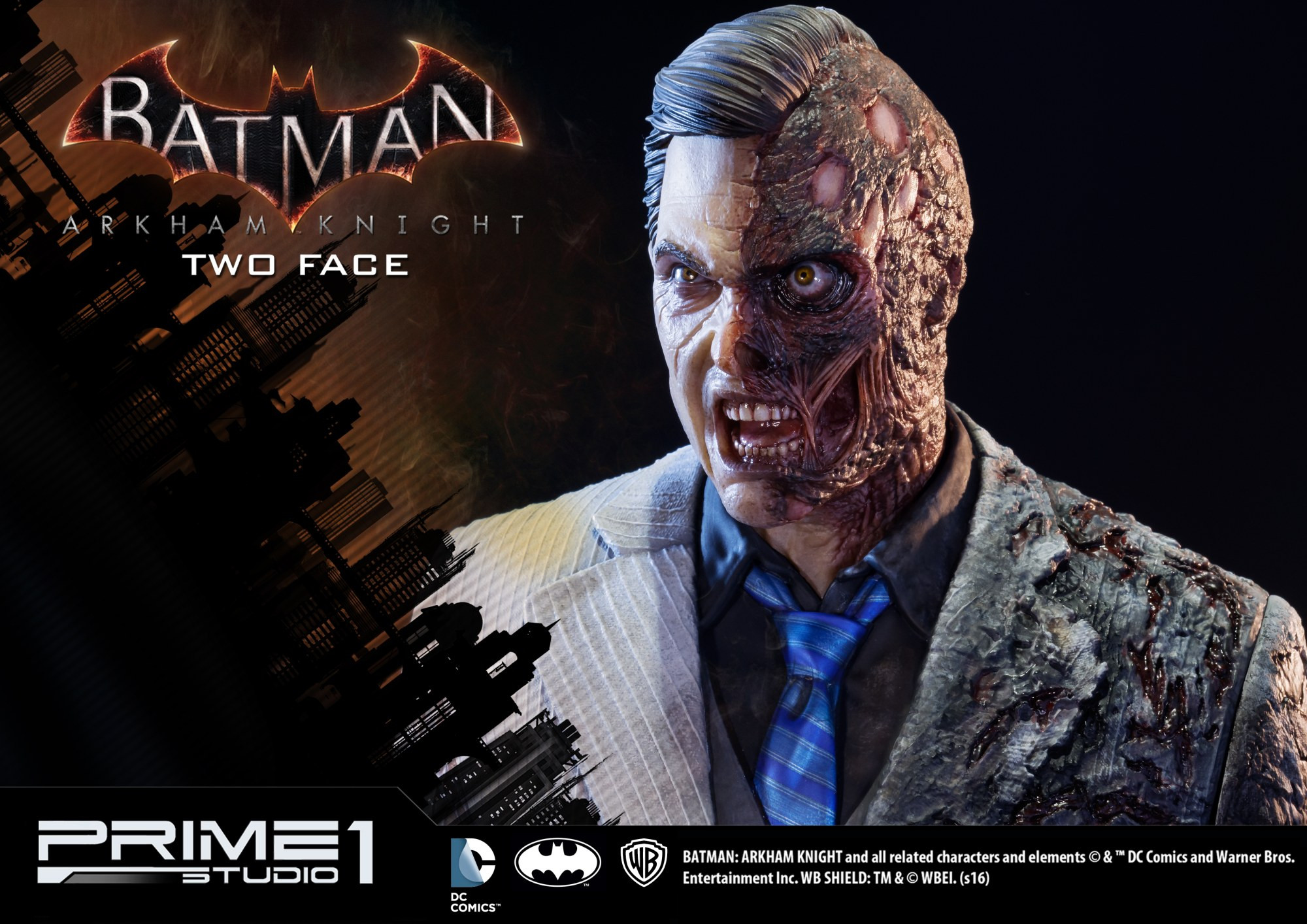 Prime 1 Studio is proud to present MMDC-11 TWO FACE from the Batman Arkham. District Attorney Harvey Dent was one of Batman’s strongest allies in Gotham City, until Carmine Falcone threw acid in Dent’s face, and hideously scarred him. The wounds fractured Dent’s psyche, and he was reborn as Two-Face: a schizoid criminal mastermind, obsessed with duality. His former good-luck charm, a “two-headed” trick silver dollar, was damaged on one side from the attack, and Dent had seized on it as a reflection of his half-scarred visage.