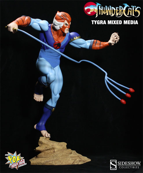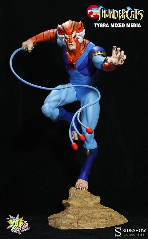 Pop Culture Shock Collectibles are pleased to announce the next piece in their wildly popular line of 1:4 scale statues based on the 80’s Thundercats cartoon! This superbly detailed and high quality collectible of TYGRA in his dynamically iconic pose, stands an imposing 23 inches tall and is expertly cast in high quality polystone with a mastefully tailered cloth costume.
