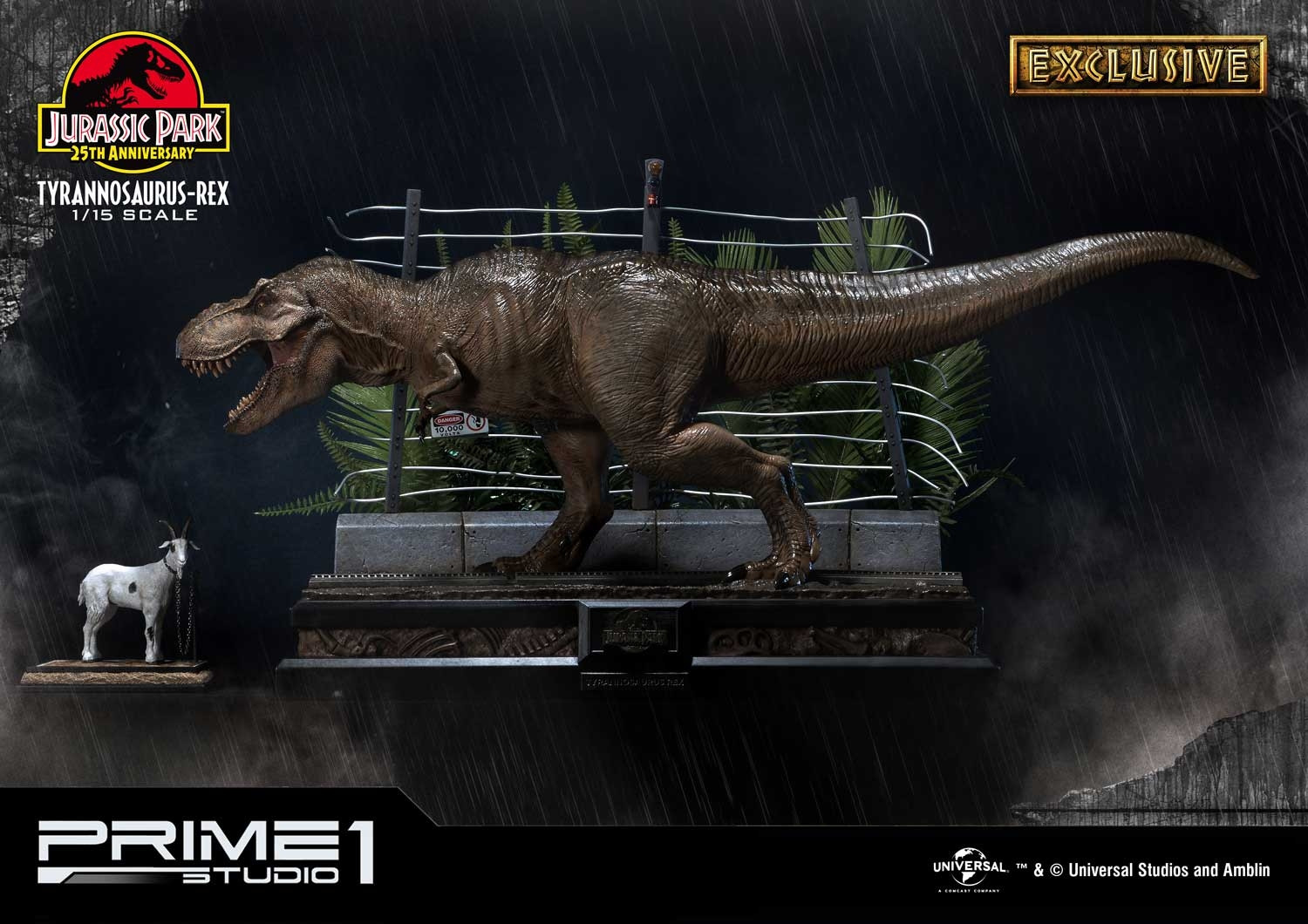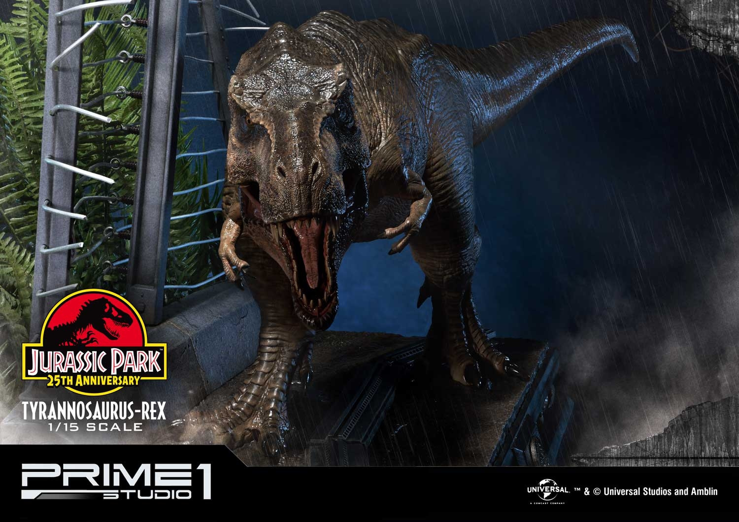 Prime 1 Studio is proud to present 1/15 Scale LMCJP-01: Tyrannosaurus-Rex from Jurassic Park (Film 1993). Jurassic Park directed by Steven Spielberg, it is based on the 1990 novel of the same name by Michael Crichton. The film is set on the fictional island of Isla Nublar, located off Central America’s Pacific Coast near Costa Rica, where billionaire philanthropist John Hammond and a small team of genetic scientists have created a wildlife park of cloned dinosaurs. Tyrannosaurus Rex is the largest carnivore living on Isla Nublar and, as such, grew into a fearless, bold, and domineering beast who walks the line between heroine and villainess. T-Rex nicknamed is Roberta but most fans call her Rexy/Rexie. She is a female Tyrannosaurus, largely motivated by two goals: keep intruders off her territory and eat any pry she finds there. She is known for participating in several incidents and for saving the major human participants involved in these incidents from other dangerous creatures, although inadvertently. This makes her role something of an anti-hero in the films. Based on the iconic scene from Jurassic Park, we are thrilled to let all our fans know the artists behind this project. Julien Romeo is the main modelers for the Jurassic Park: Origins. With him mainly sculpts this project with the help of Steve Jubinville which both have worked for ILM. Fans can expect this product to be the most movie accurate as possible. This is a must-have for all Rexy fans from Jurassic Park franchises.