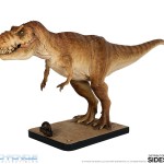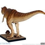 The maquette was used to provide a proof of concept to Steven Spielberg and using trigonometry, science and a projector, a team of 10 people dissected a casting of the 1:5 scale T. rex into slices to analyze the shape of each piece of the T. rex. From there, using the projector, each piece was exaggerated to 5 times the original size. This allowed Stan Winston Studios to create an outline of each piece of the 1:5 scale T. rex in plywood, to assemble on an aluminum and steel structure to create the inner structure of the 1:1 T. rex. After applying wire, fiberglass resin, clay, and many man-hours to the structure, the T. rex came to life as a magnificent 45′ sculpture.