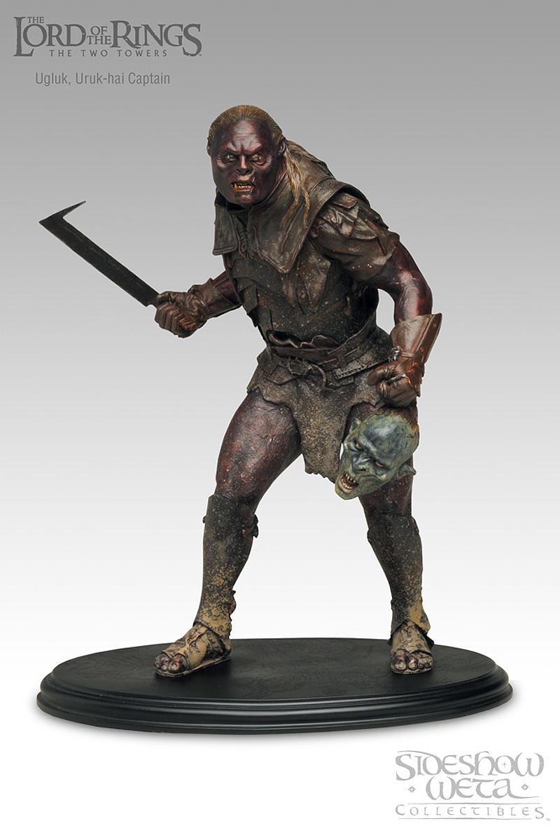 An Uruk-hai chief, Uglúk took command of a troop of scouts dispatched to capture the Hobbits and return with them to the wizard Saruman. Uglúk’s troop was joined on their journey by a group of Orcs, leading to several disagreements over their course of action. The chief resolved the issues of leadership and shortage of food with his own style of Uruk diplomacy.