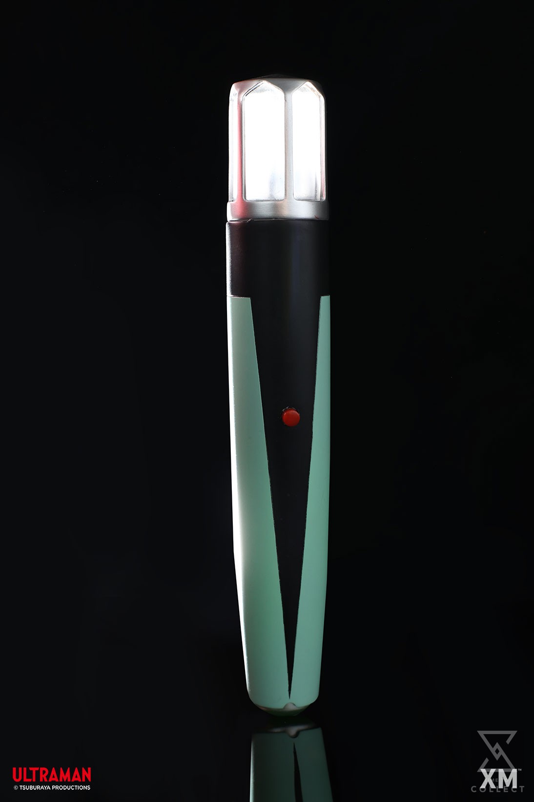 XM’s interpretation of the Ultraman (C Type) stays true to the concept behind suitmation in the original Japanese episodes. Each crease and fold is individually sculpted and hand-painted to create the realistic look of form-fitting latex suit. Special care has been taken by Yoshiki Fujimoto and the XM Art Team to reproduce these creases during the sculpting process. The eyes light up and Color Timer on the chest features sequential lighting with blue indicating Ultraman is at full strength and red when energy gets low. The Ultraman (C Type) 60cm bust also comes with Beta Capsule, a transformation item Hayata uses to turn into Ultraman. The Beta Capsule’s cap lights up when the red ignition button is pressed.