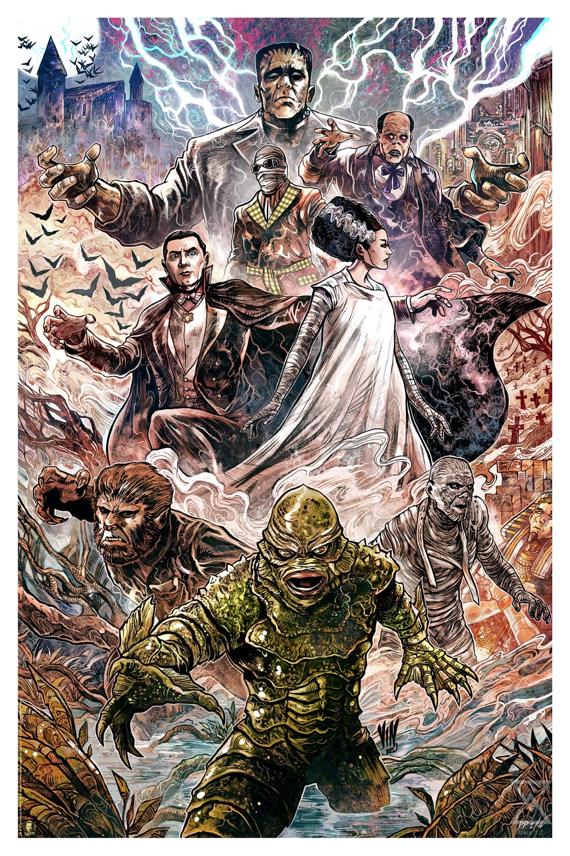 Sideshow presents the Universal Monsters Fine Art Print by artist Vincenzo Riccardi. This officially licensed Universal Monsters art print pays tribute to the most iconic movie monsters in horror history.