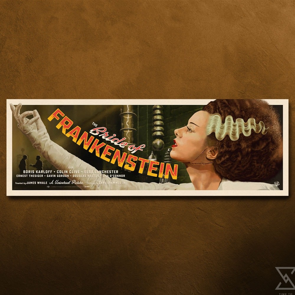 Frankenstein’s Creature is given a bride in Andrew Swainson’s electrifying Universal Monsters artwork. Limited to 175 hand-numbered pieces, this 36″ x 12″ lithograph print is the perfect companion to join your horror movie poster collection.