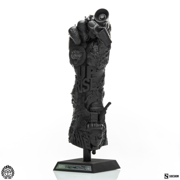 The Uprise Fist Fine Art Statue comes in a limited edition of only 700 pieces. Each individually numbered statue features a metal base plaque that is hand-signed by the artist, along with a certificate of authenticity. This limited-edition statue comes securely packaged in a custom designed art box featuring a selection from the Uprise mural series, a statement by Eaton, and a visual legend to identify the key moments represented in the sculpture. First debuted at the DEAD PRESS POP-UP art exhibition featuring Tristan Eaton x Sideshow, the Uprise Fist Fine Art Statue is an inspiring, eye-catching statement piece in any home.