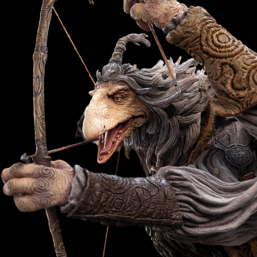 urVa’s counterpart is the most feared Skeksis of all, the ferocious Hunter. skekMal is a relentless, predatory warrior that even other Skeksis hold in awe. Although the Archer’s senses are as keen and his marksmanship unmatched, he lets his arrows fly not to kill, but to steer the course of destiny. His bravery is that of one who fights not to preserve his own life, but that of others; wielding his own mortality as adeptly as any bow or blade in the service of freedom and light.
