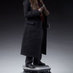 The Van Helsing Premium Format Figure is a mixed media horror collectible with a fully tailored fabric costume recreating the character’s signature appearance onscreen. He wears a black suit jacket and suit pants along with a red vest, a white collared dress shirt, and a necktie. An elegant faux fur-trimmed coat completes the costume, while his leather-like gloves and black dress shoes are sculpted with realism to complement the fabric elements. Armed with a crucifix in one hand and a hammer and stake in the other, Van Helsing has all the tools of the trade with which to defeat the dreaded vampire.