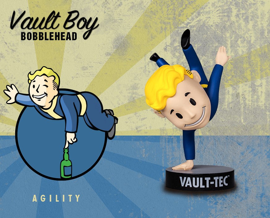 Introducing the commemorative Agility bobblehead toy from Vault-Tec. By using a bobblehead, you agree to exempt Vault-Tec from all responsibility, warranted or otherwise, for any side-effect or usage, intended or otherwise, of this product. All points are non-refundable and cannot be exchanged, so plan accordingly. Failure for this bobblehead to improve your performance is almost certainly your fault, and cannot be held against Vault-Tec or its subsidiaries.