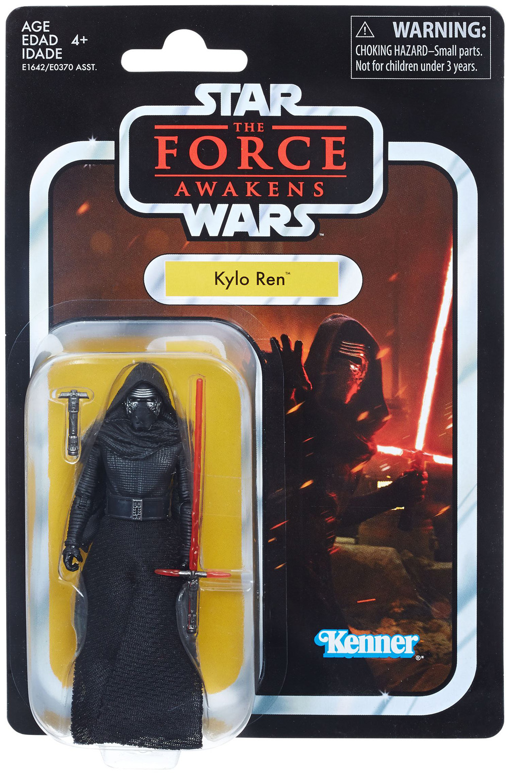 Kylo Ren from the The Force Awakens vintage collection action figure in 3.75″ size on a classic carded back.