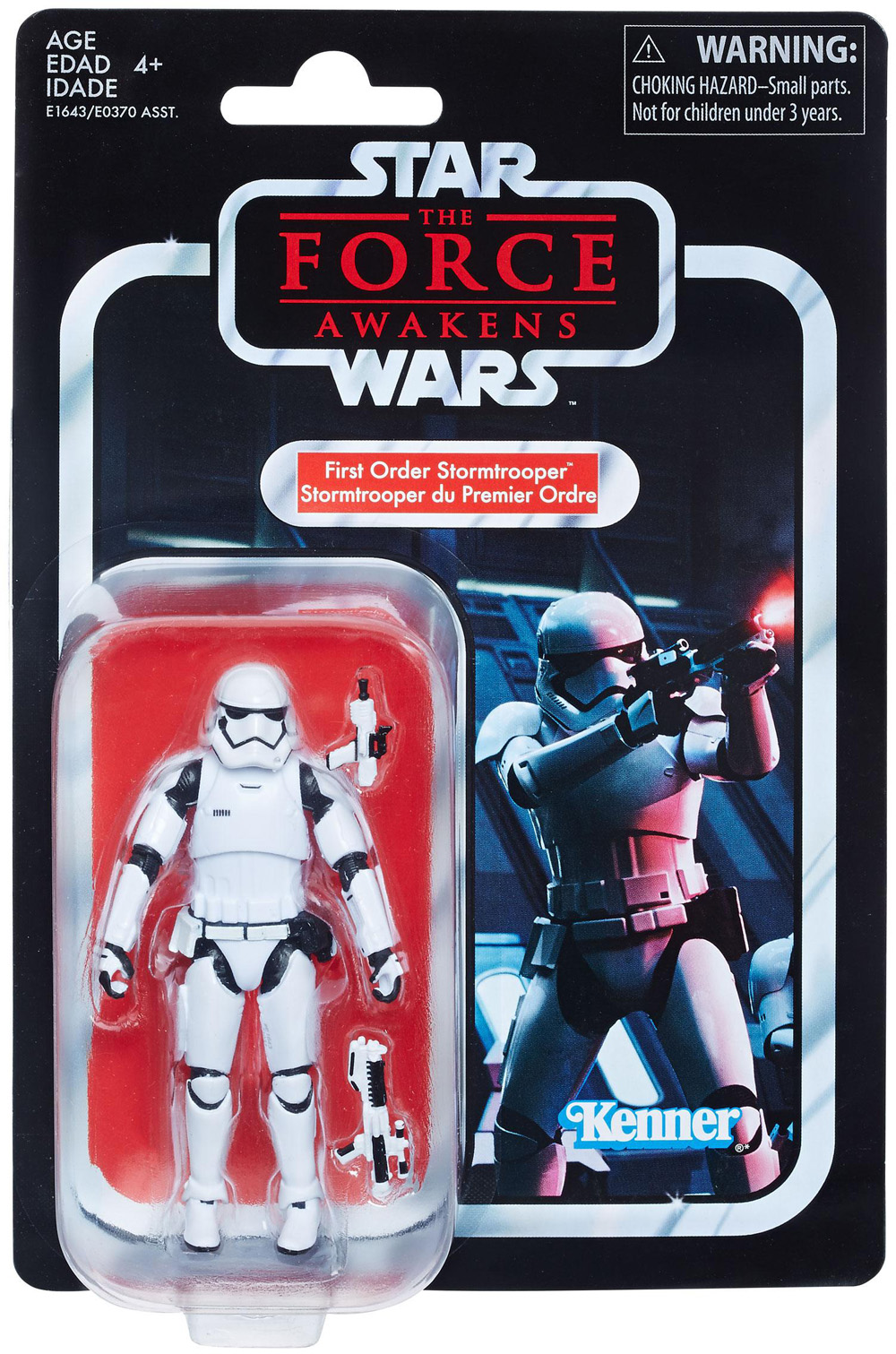 First Order Stormtrooper from the The Force Awakens vintage collection action figure in 3.75″ size on a classic carded back.