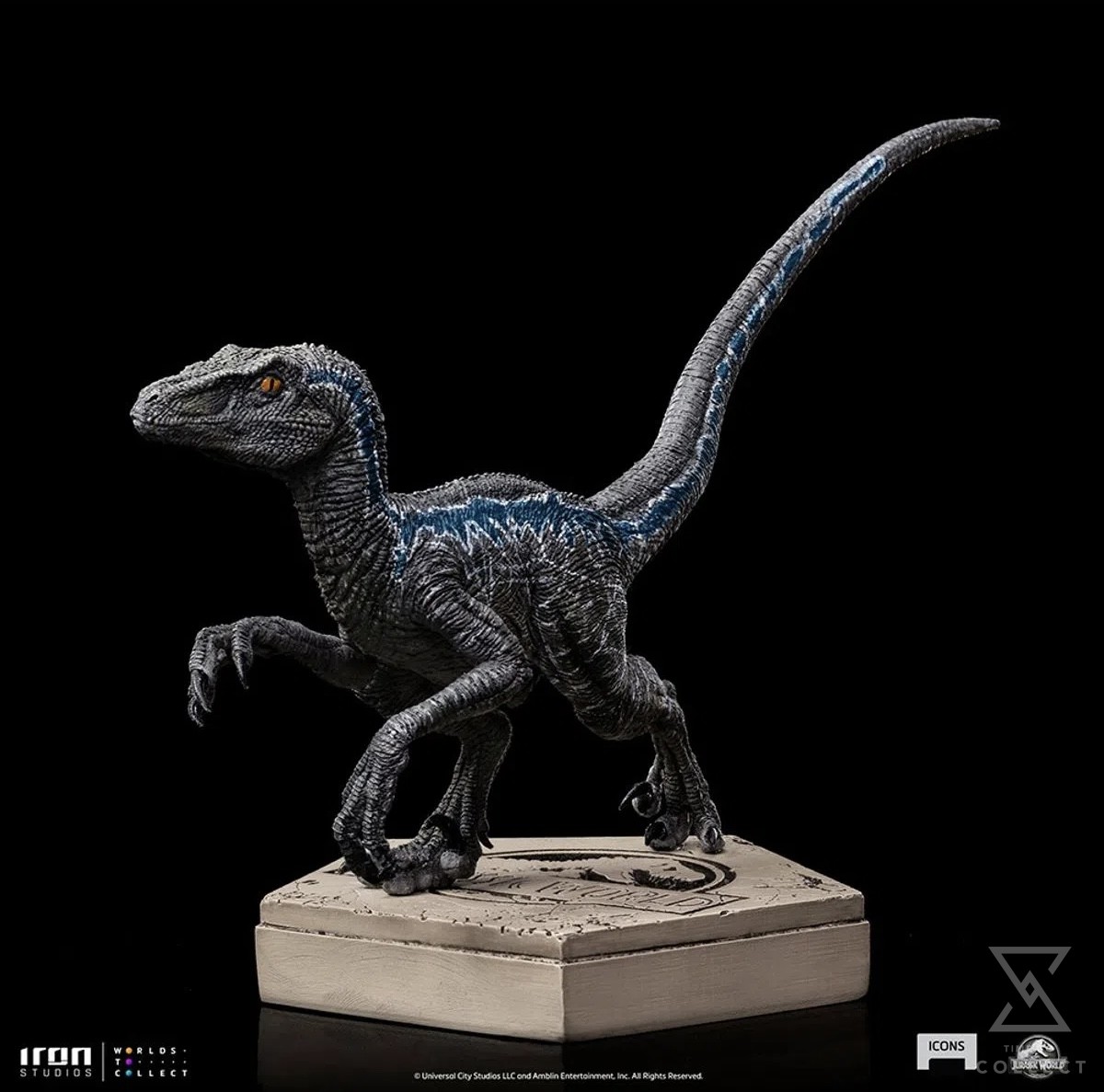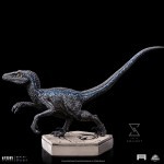 Created by InGen in a project with military purposes, Blue and her sisters Charlie, Delta, and Echo were trained by Owen Grady, but since the incident in Isla Nublar, only Blue, the eldest and the most faithful to Owen of the pack, survived and became apparently the only Velociraptor alive. Capable of expressing emotions, like affection, pain, and empathy, Blue reencountered her old trainer three years after in an apparent rescue mission, on which Owen is betrayed and Blue is hurt, captured, and taken to the continent with other captive dinosaurs for an auction. After her escape, the survivor Blue reappears, and now has a daughter named Beta. Besides the movies, Blue made some special appearances on Netflix TV show “Camp Cretaceous”. Iron Studios proudly present their new statue “Velociraptor Blue – Jurassic World – Icons”.
