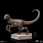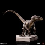 One of the most popular dinosaurs in the cinematographic media of Jurassic Park, with great relevance in all the movies. Usually seen hunting in packs, and portrayed as highly intelligent, capable of setting traps and communicating with each other. Invading the Visitor Center of Jurassic Park, the sound of their claws hitting the ground and their howls and roars of communication frightened John Hammond’s grandchildren and led them to take refuge in the kitchen…It’s still remembered to this day in the memorable scene from the 1993 movie that still gives goosebumps, where Steven Spielberg and Stan Winston Studios showed how dangerous the Velociraptors are. Iron Studios bring another version of this iconic predator with the statue “Velociraptor C – Jurassic Park Icons”, in a pose emulating the fearsome dinosaur sneaking around, using its keen senses to observe any movement in its habitat.