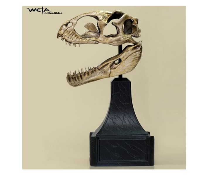 Lethal Venatosaurus packs stalk the jungles of Skull Island on the look out for prey. Ambitious predators, these wily carnivores hunt the mighty Brontosaurus herds that live on the island. When Carl Denham’s expedition croses paths with a pack of hungry Venatosaurus, they are forced to run for their lives or become a meal for the rampaging dinosaurs. This piece shows the bone structure of the Venatosaurus as it was conceived by the design team at Weta and accurately reflects the final look of the creature in the film.
