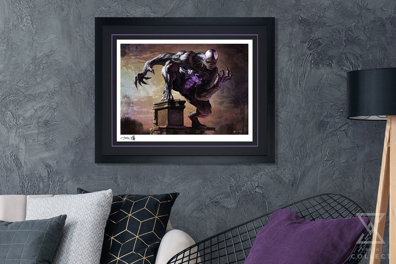 Available unframed or in a custom framed presentation, the Venom Variant Fine Art Print features authorized, automated dual artist signatures as well as an embossed Seal of Authenticity as a part of the limited edition of 200 pieces exclusively available to Marvel Insiders. Pair this artwork with other Spider-Man wall art or Venom collectibles to create the ultimate super hero showdown in your home.
