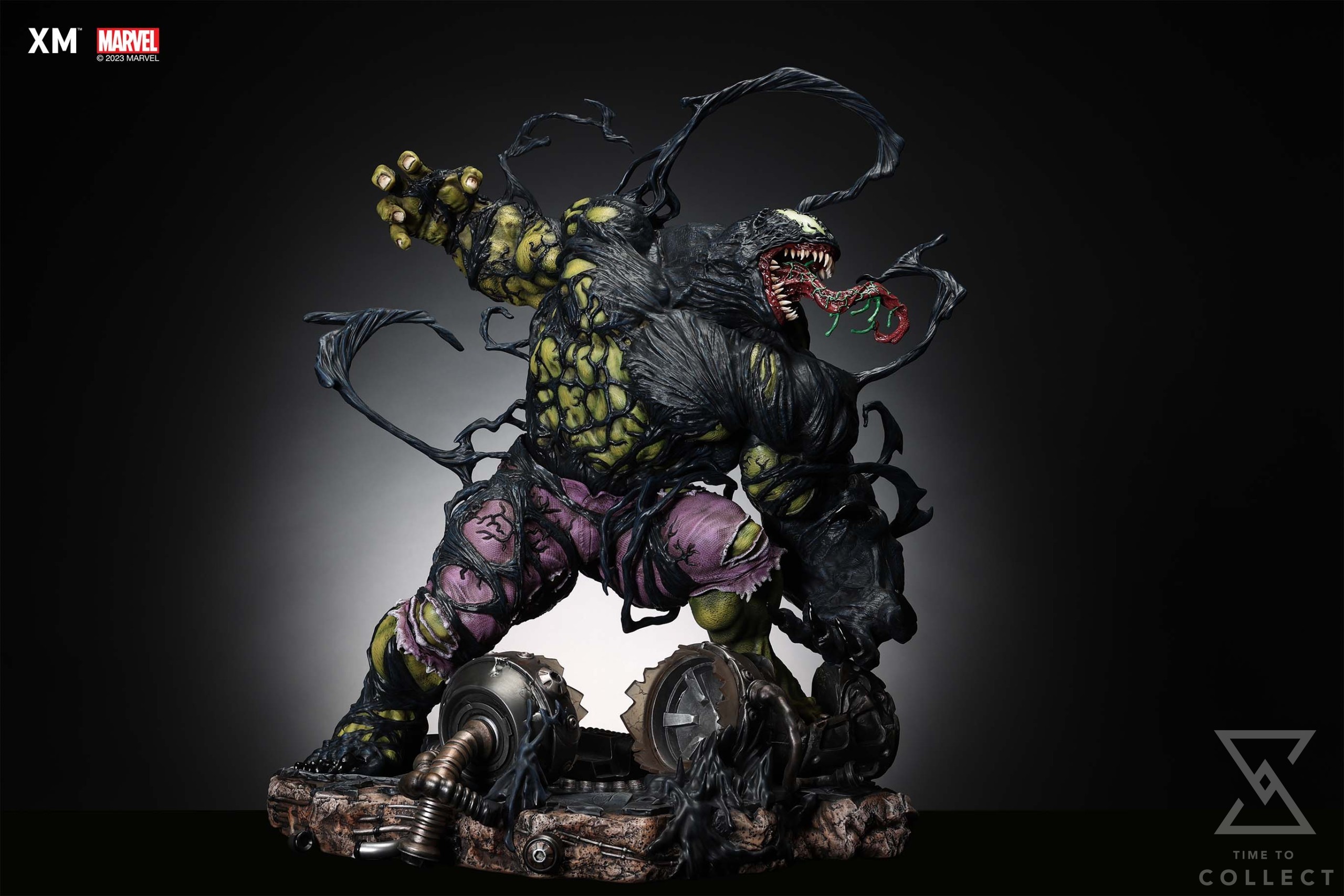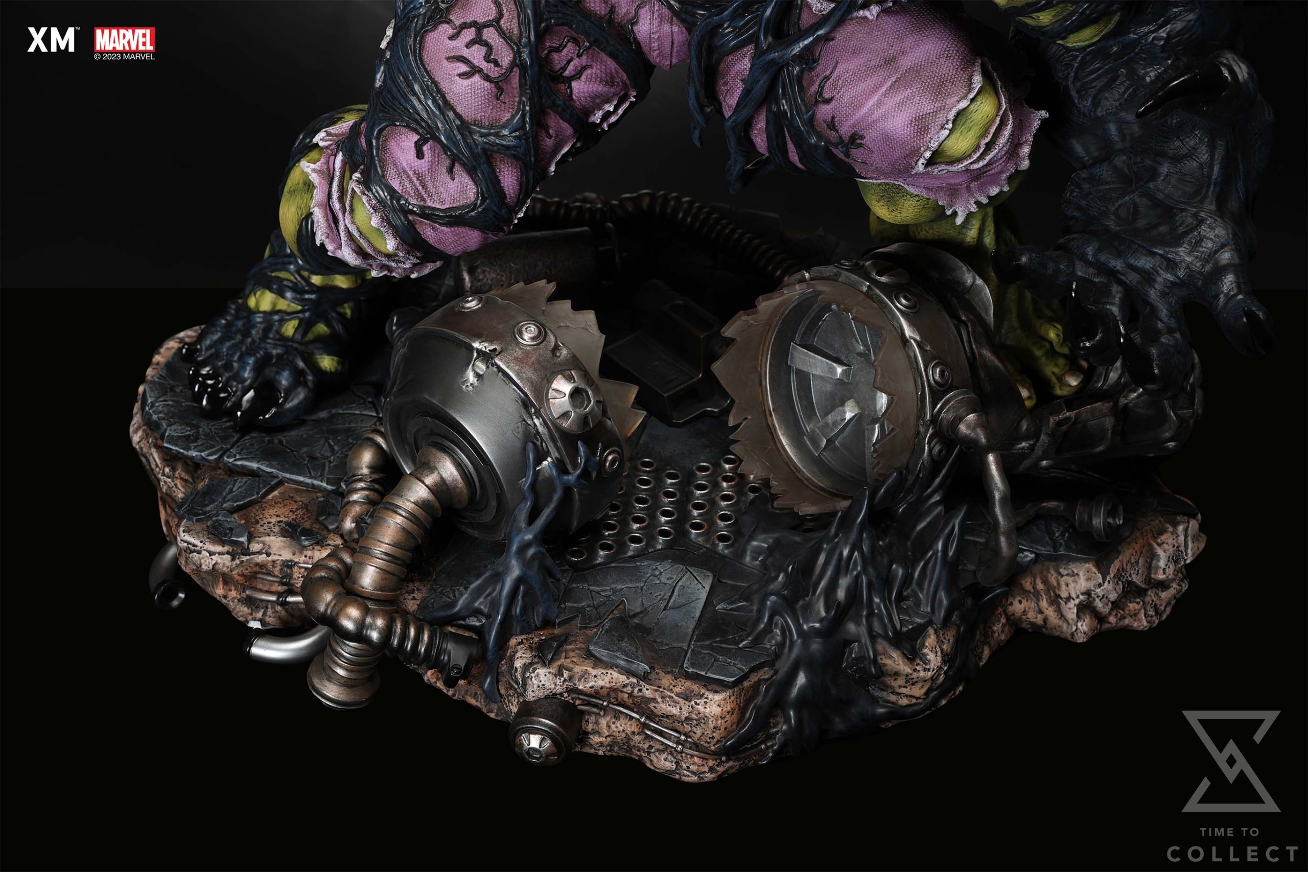 XM Studios is excited to present our next 1/4 scale MARVEL Premium Collectibles series statue, Venomized Hulk. Each painstakingly handcrafted statue is individually hand-painted with XM’s famous quality finish, and comes in a bold, dynamic, and story-laden style. A companion piece to Absolute Carnage 1/4 scale, Venomized Hulk stands on Bruce Banner’s destroyed lab as he prepares to throw a punch at Absolute Carnage. Venom’s tendrils are strewn across Hulk’s body as the symbiote bonds with him, only succeeding in transforming his head, part of his body, left arm, and right foot due to his sheer size.