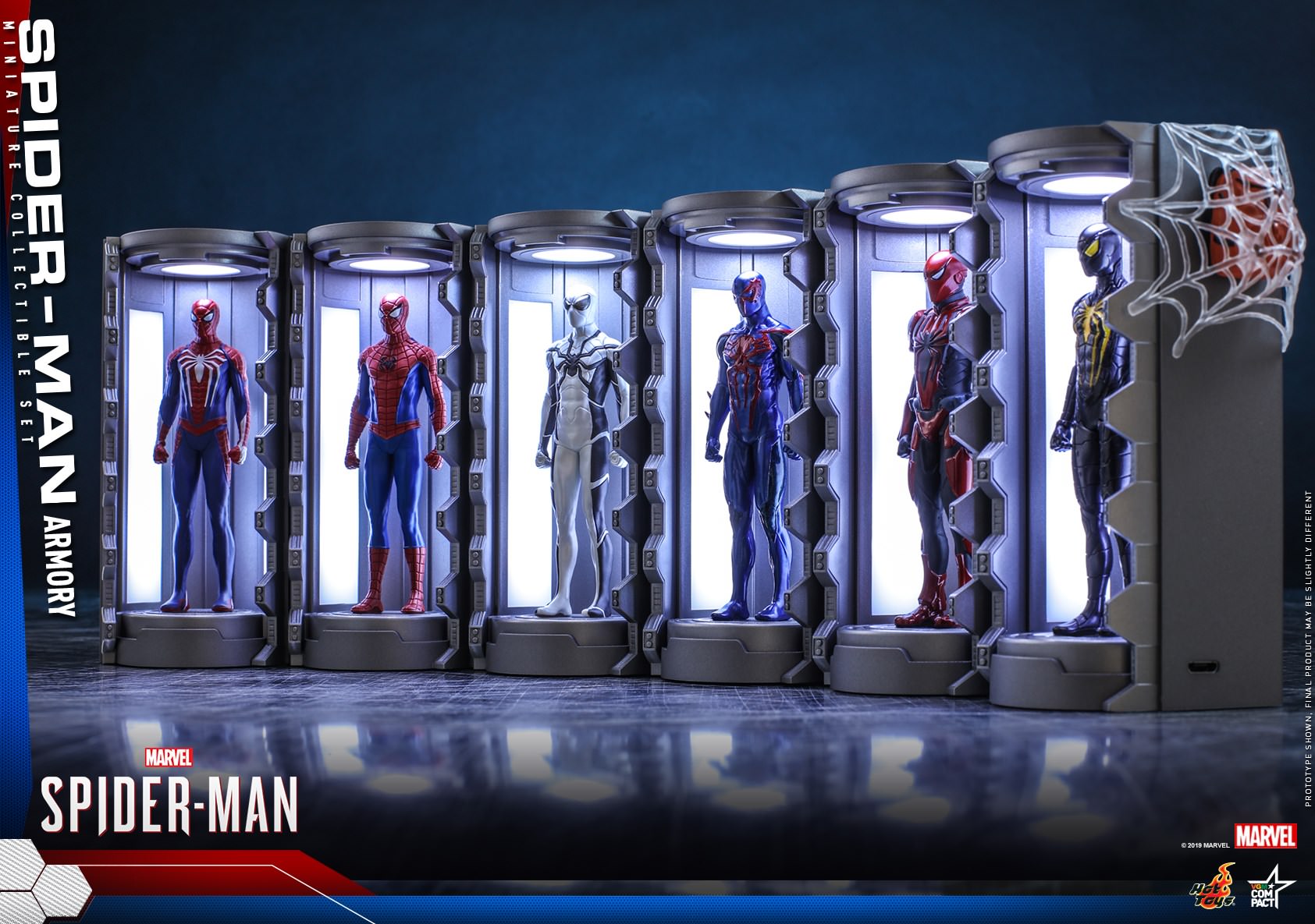 Inspired by the concept of our Iron Man Hall of Armor Miniature Collectible, the Hot Toys team has flexed our creative imagination by creating a newly designed armory, highlighting the multitude of suits in Marvel’s Spider-Man, to accommodate our friendly neighborhood Super Hero in miniature size.