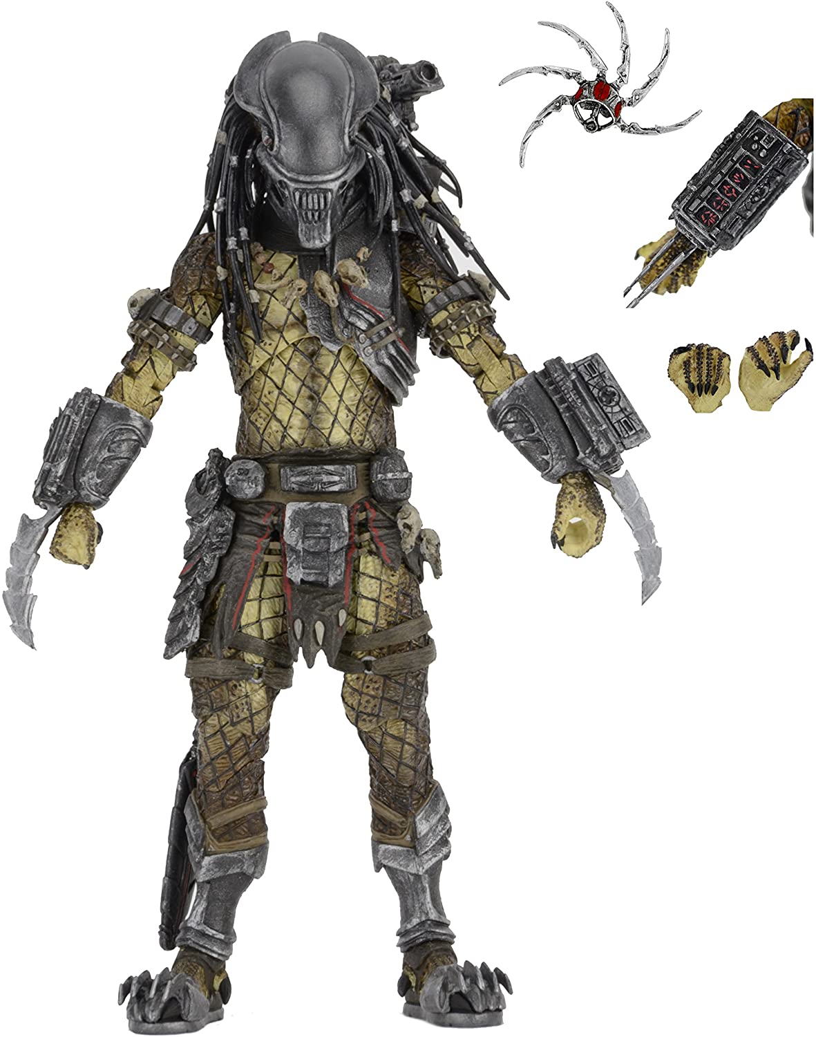 NECA’s longest running action figure line continues! Series 17 features even more action figure debuts from the Alien vs. Predator movie and video game. The assortment includes Youngblood and Elder from the 2004 movie, and Serpent Hunter from the 2010 video game. Elder Predator wears a regal soft goods cape with real chain and comes with a removable mask and staff accessory. Youngblood Predator features dual wrist blades and comes with a staff with impaled Xenomorph head. The frequently requested Serpent Hunter Predator (also known as Alien Head Predator) features a unique, Xenomorph-inspired bio mask, dual extendable wrist blades, and sword and shuriken accessories. We’ve paid close attention to detail to make these as accurate to the movie and game as possible. Each stands 8.25” tall and has over 30 points of articulation. As an added bonus, Elder and Youngblood’s hands and blades are removable and compatible with other AvP Predators. Blister card packaging.