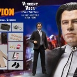 - Quentin Tarantino changed narrative film with his revolutionary crime film, “Pulp Fiction.” John Travolta played gangster Vincent Vega and it revitalized his career. This figure of Vincent Vega is from the memorable sequence in the film where Vega is tasked with showing his boss’s wife a good time, without taking advantage. Vincent dress for his “date” in a smart black suit with a bolo tie and slicks back his long hair in a ponytail.