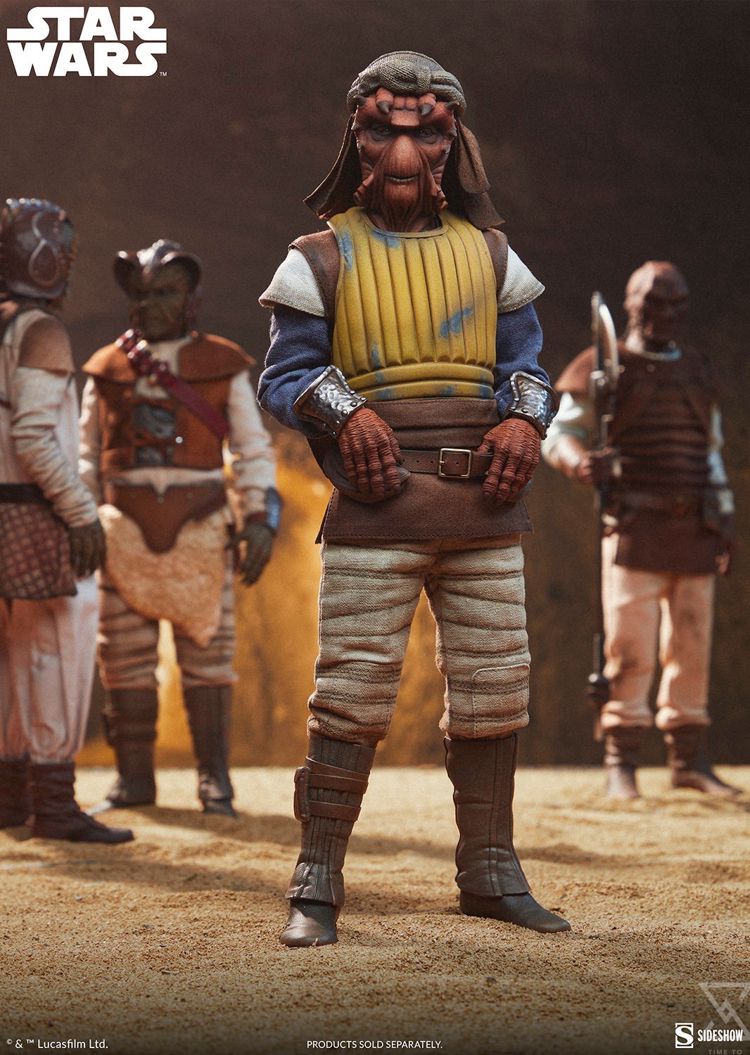 The Vizam™ Sixth Scale High-End Collectible Figure is the latest addition to Sideshow’s Scum & Villainy line of high-end collectibles, which brings your favorite underworld denizens all the way from a galaxy far, far away to your nearest home barge. Keep your senses sharp and be on the lookout for more infamous characters in this delightfully dangerous series of limited-edition high-end figures.