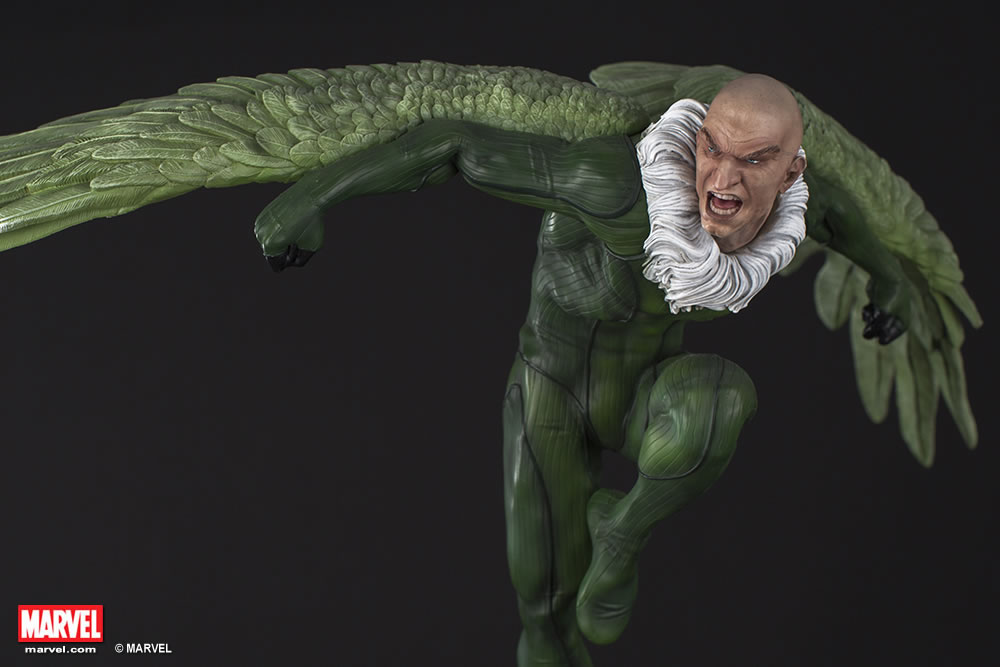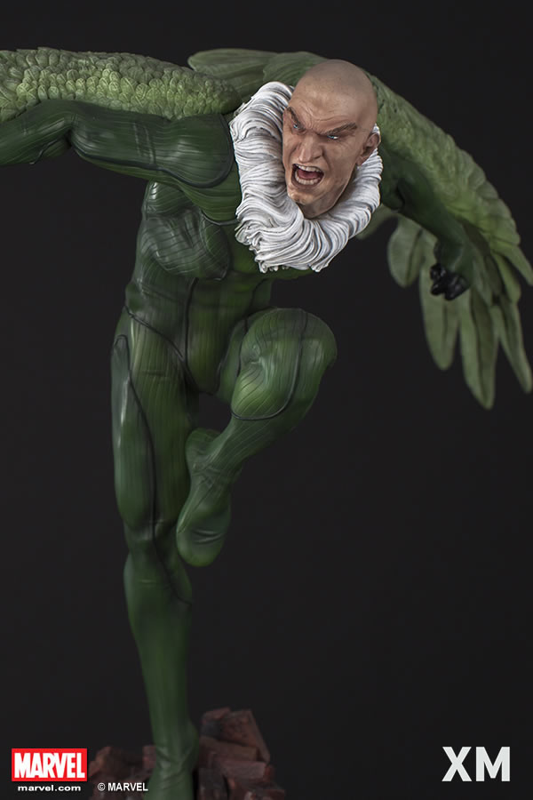 XM Studios is excited to present our next Marvel Premium Collectibles series statue, Vulture! The former electronics engineer turned flying super villain is immortalized in amazingly detailed 1:4 scale cold-cast porcelain. Each painstakingly handcrafted statue stands at approximately 70.5 cm tall and every piece individually hand-painted with the highest possible quality finish. Designed to be displayed on high or low ground, the Vulture is poised to strike swiftly and deadly as a member of the Sinister Six! Complete your Sinister Six line up with Vulture! This is quite possibly the most dynamic ¼ scale Vulture you’ll ever see!