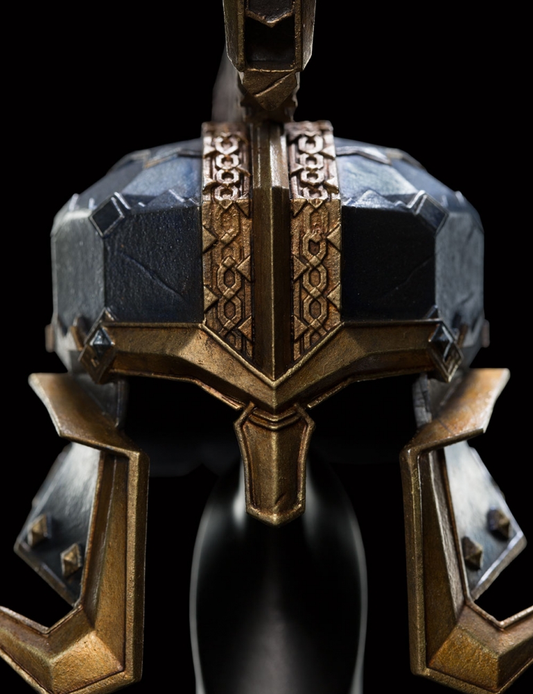 The Dwarves of the Iron Hills were a tough people; courageous, indomitable and canny in the working of ore they mined from the ranges in which they dwelt. Thick-bladed axes they wrought, and armour, hard and expertly fitted. All among their army bore iron helms, but the grandest was saved for their king, Dain Ironfoot. Fashioned after a boar, a crest rose high above the bowl of Dain’s helm, maned with red and black quills that shone beneath the sun. From its cheeks curled bladed tusks. Of great weight was the king’s helm, but Dwarves made light of such burdens, and in truth the bone of Dain’s skull was every bit as thick. Even helmetless he could render senseless Orcs twice his size with a swift head butt.