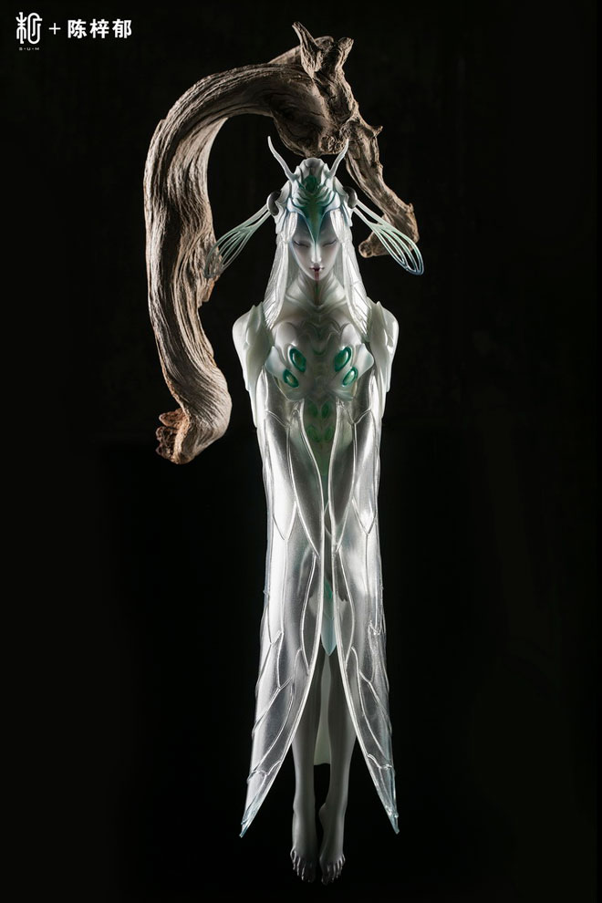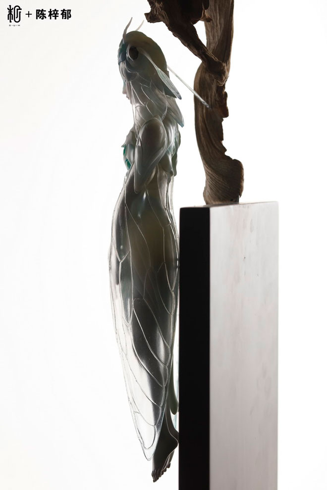 Manas SUM present the White Cicada Statue! This statue by Chen Ziyu x Manas S+U+M x Manas SUM stands approximately 18″ tall and is hand-painted on resin and wood.