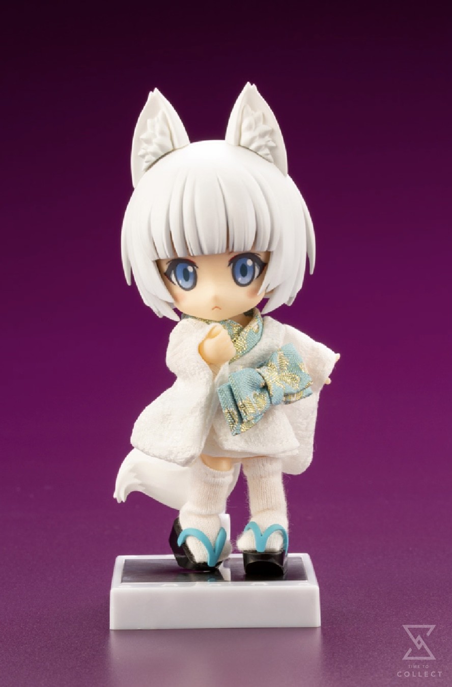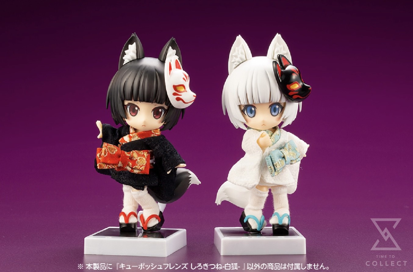 A Kotobukiya Japanese import! The 10th member to join the Cu-poche:friends series is an adorable fox spirit! The Cu-poche series features a variety of adorable action figures with movable joints, and Kotobukiya’s original Cu-poche: friends series of original characters was designed to show off these features. Their pocket-sized proportions make them the perfect partner to take along anywhere you go! This cute and mystical fox spirit is the latest addition to the Cu-poche: friends Otogi line, which features an enchanting group of magical characters who seem as if they’ve come straight from a fairy tale world! White Fox Spirit is always with her best friend, Black Fox Spirit, and while she may be a little shy at times, she is a nice fox spirit who is courteous to everybody! Although she might look human, this Cu-poche’s pointy white fox ears and fluffy tail are sure to remind you that there’s more to this cutie than meets the eye. The figure’s fox ears and tale are embedded with magnets, making them easy to attach or remove.