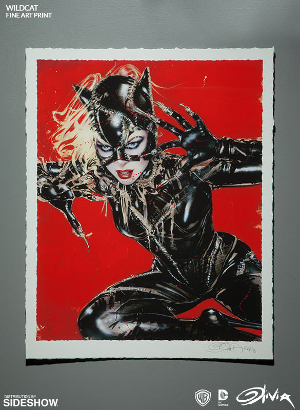 FROM TIM BURTON’S 1992 CLASSIC BATMAN RETURNS, MICHELLE PFEIFFER INHABITS THE CATWOMAN ROLE AND INSPIRES OLIVIA TO CREATE THIS HOMAGE. THIS EXCLUSIVE LIMITED EDITION PRINT OF OLIVIA’S ACRYLIC-ON-WOOD PAINTING IS FAITHFULLY REPRODUCED ON 100% ARCHIVAL HEAVYWEIGHT 500GSM RAG ART PAPER WITH HAND-TORN EDGES, AND IS DOUBLE EMBOSSED BY OLIVIA’S STUDIO AND SIDESHOW COLLECTIBLES.